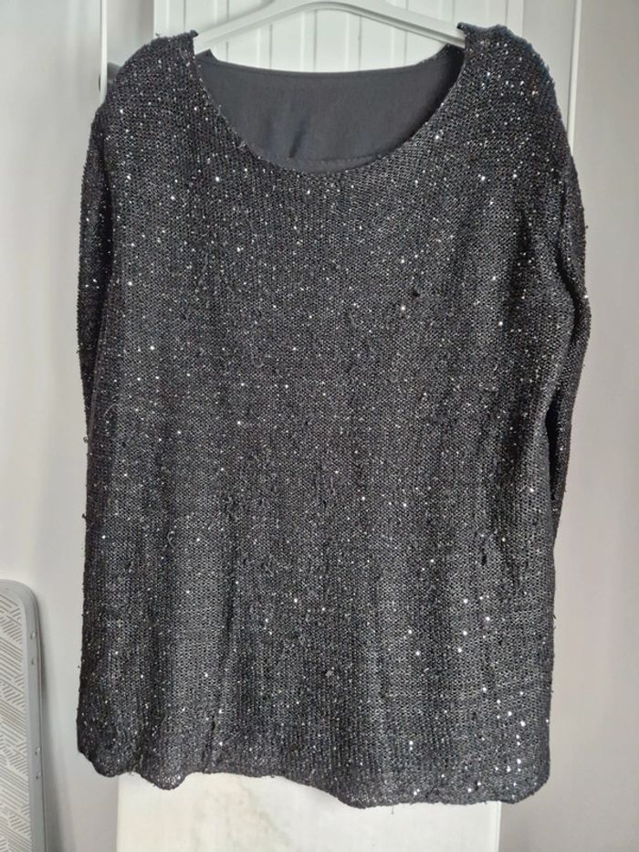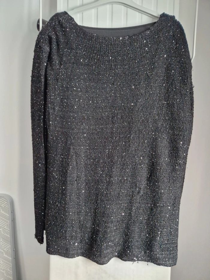 Pull femme avec doublure et sequins brillants sur la maille. dimensions : hauteur épaule jusqu'en bas 71 cm largeur d'aisselle à aisselle 60 cm #sarahzajacfemme42 #szterza