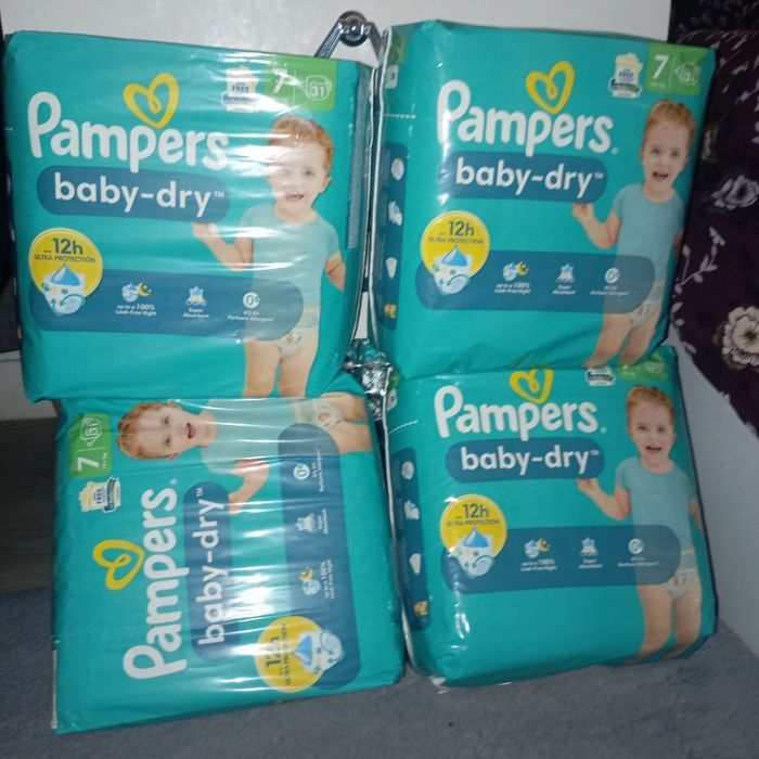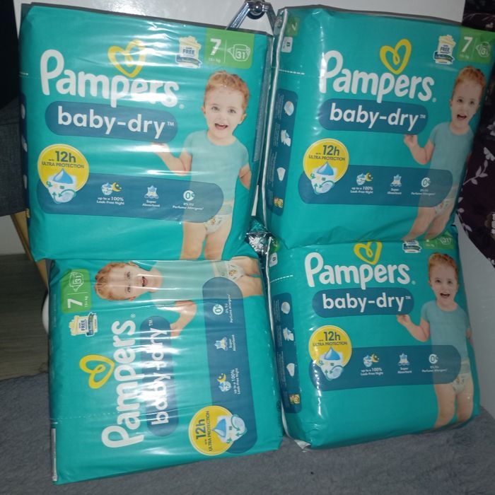 Lot de 4 paquets de couches Pampers baby dry taille 7 31×4=124 couches