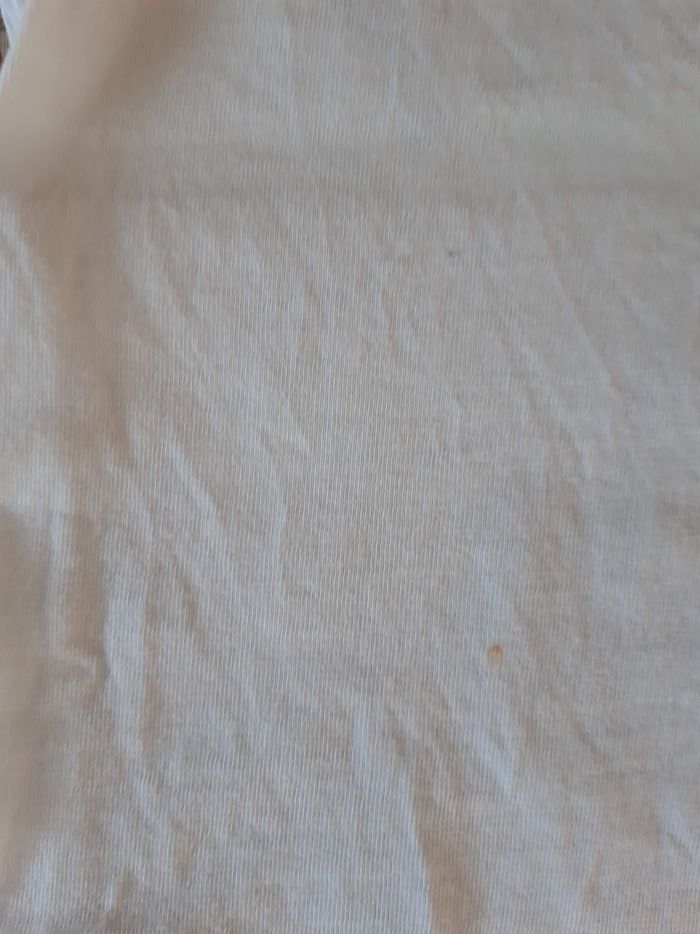 Taille 92cm, 1an et demi-2ans. Pantalon en toile. Petite tâche de rouille sur le tee-shirt survenu lors d'un lavage(voir photo n°3), légère tâche sur la couture du pantalon (voir photo n°2) ne ce voit quasiment pas une fois porté.