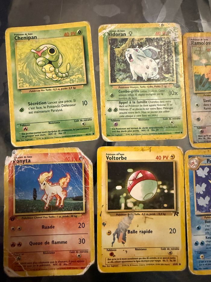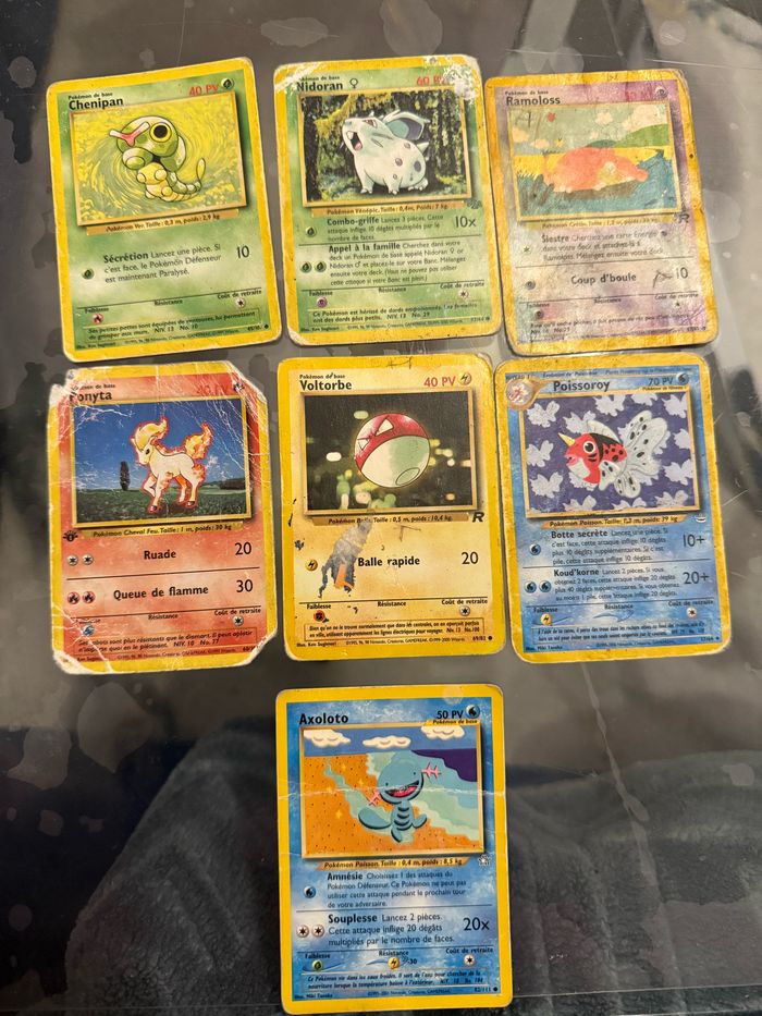 Lot de 7 : - voltorbe / - poissoroy -axoloto -ramoloss / -ponyta / - nidoran / -chenipa Vérifier état avant achat, certaines ont des marques d’usures