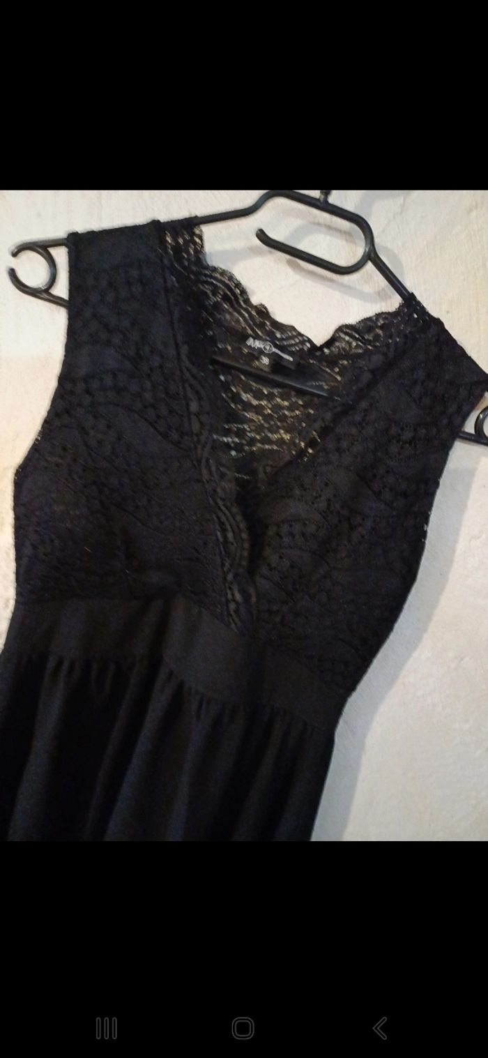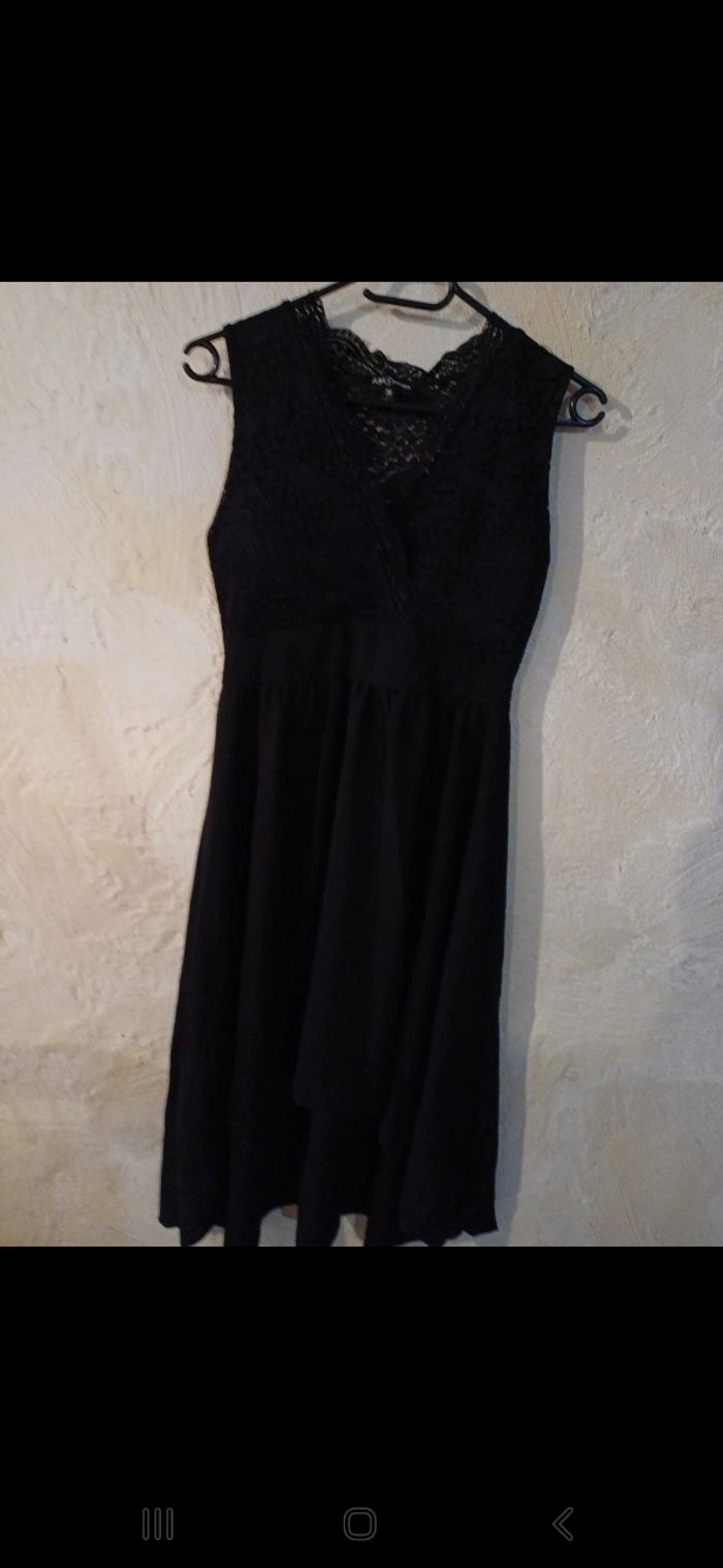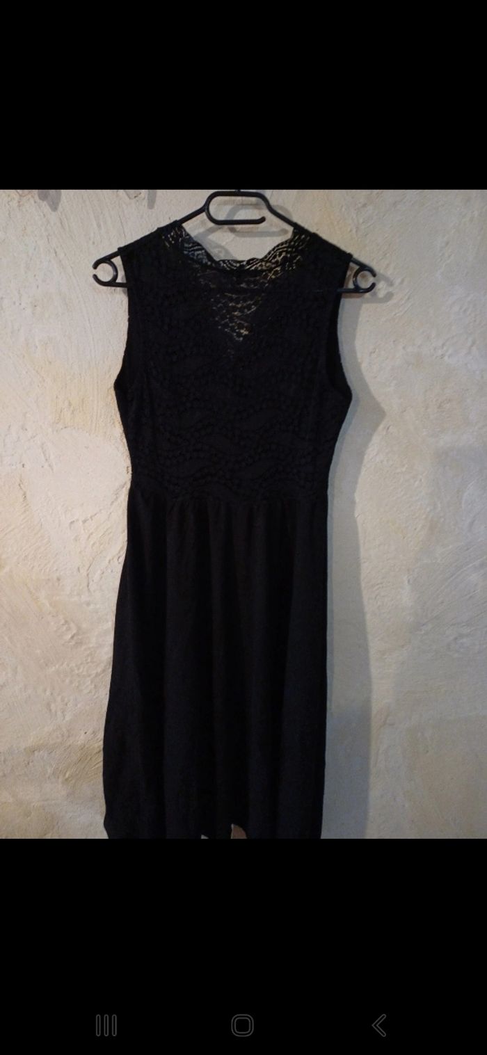Très jolie robe noire avec dentelle sur le haut. Plus longue à l arrière qu à l avant. Rembourrée au niveau de la poitrine