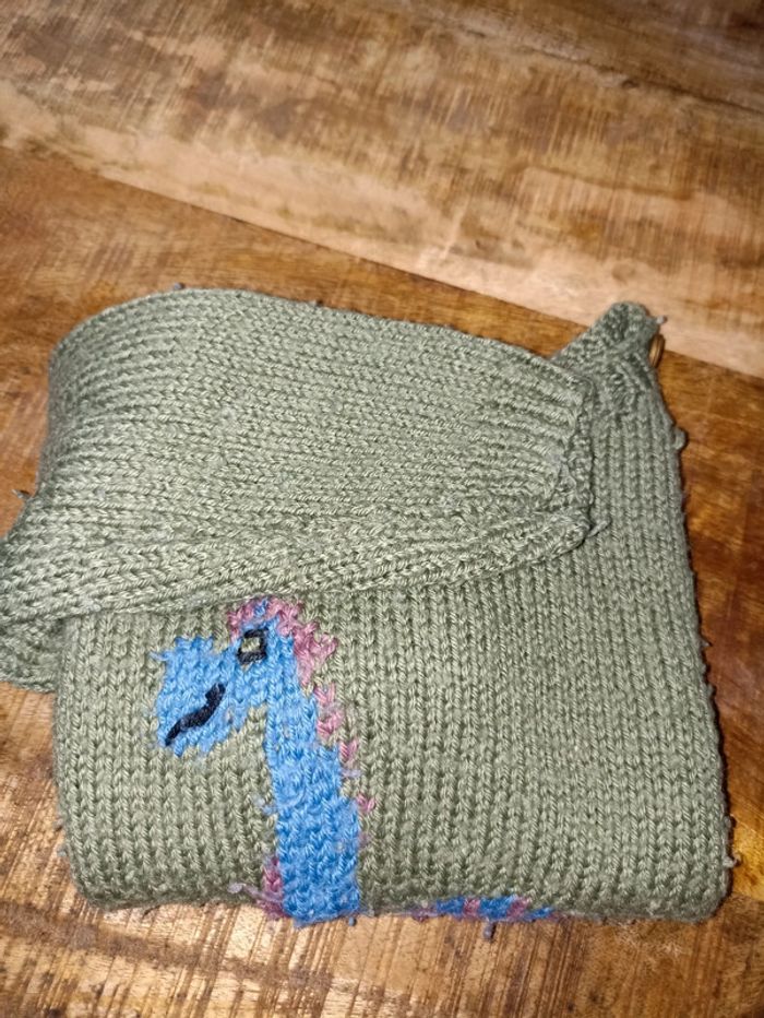 Pull laine fait main 4ans dinosaure - photo numéro 1