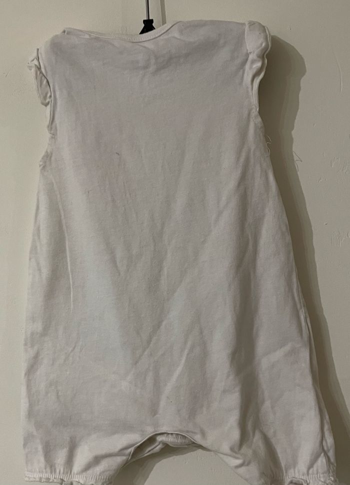 Combi-Short blanche imprimé Bébé fille 6/9 mois très peu porté très bon état Fermeture par boutons Pression