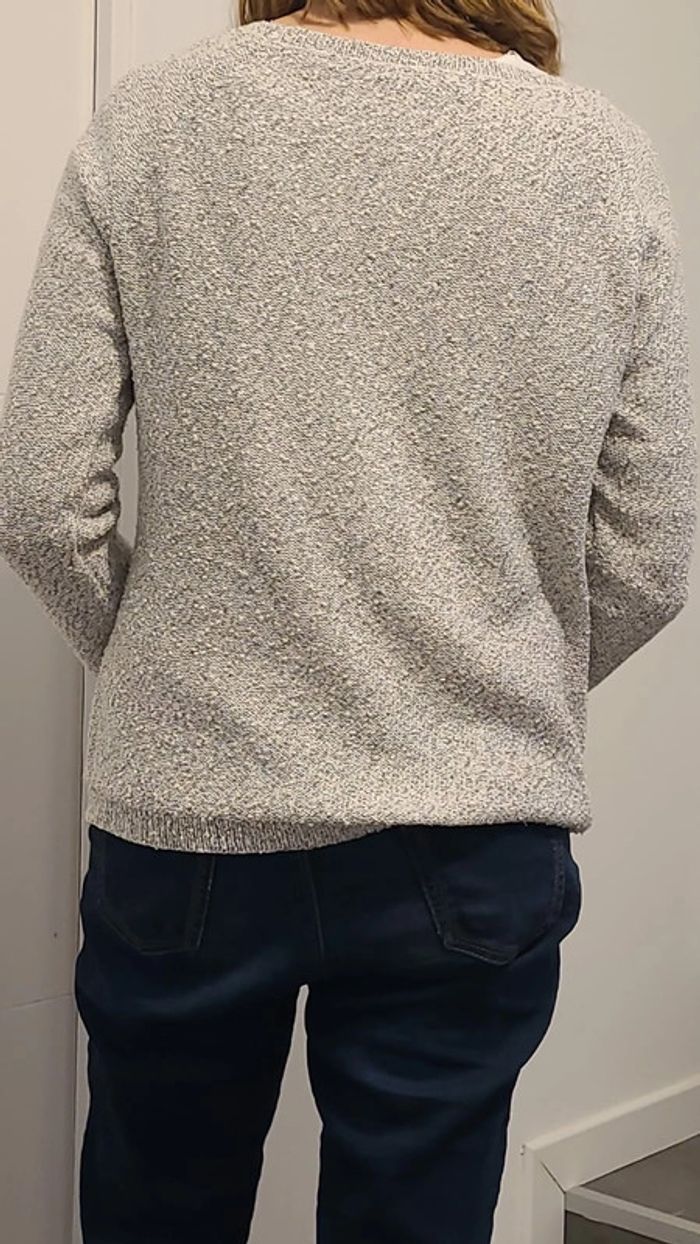 Pull gris chiné avec fils lurexés gris. Details ajourés. Maille bouclette. Très bon état N hésitez pas à découvrir les autres articles de mon dressing! 😉