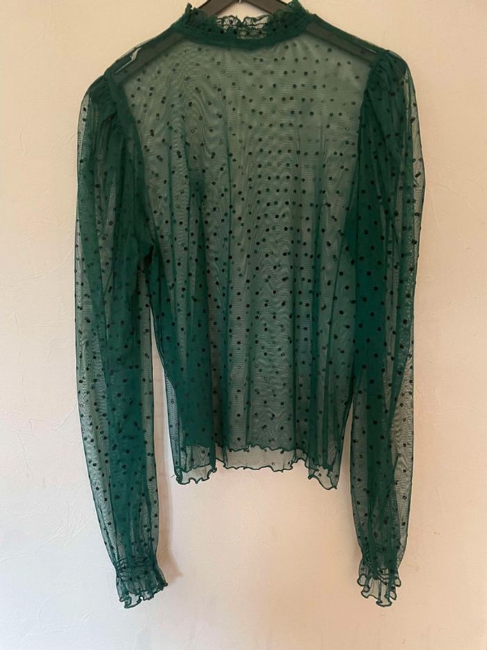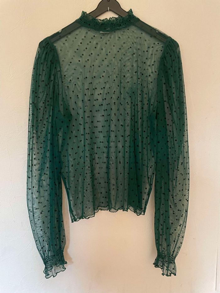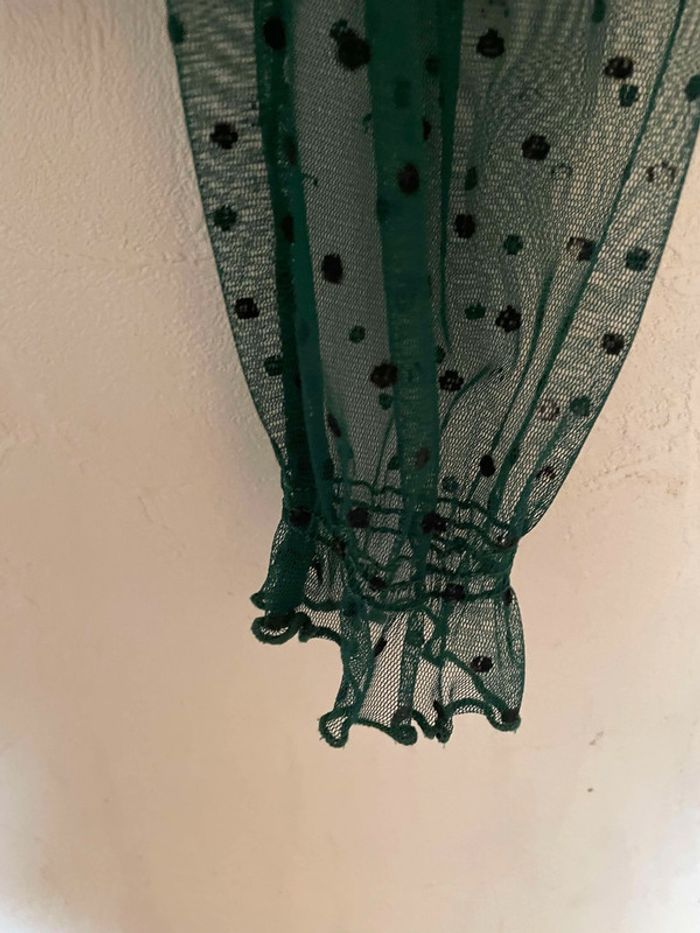 blouse verte à pois noirs transparente Pimkie abimée sur le devant (voir photo) manches longues taille 36 / S col rond mesures : - largeur col : 16 cm - largeur épaules : 33 cm - largeur aisselles : 48 cm - largeur bas : 46 cm - longueur manches (depuis aisselle) : 44 cm - longueur : 55 cm (92) #blouse #blouseverte #blousepimkie #blousefemme #blouse36 #blouseS #blouseverte36 #blouseverteS #blousepimkie36 #blousepimkieS #blousefemme36 #blousefemmeS #pimkie #pimkie36 #pimkieS #femme #femme36 #femmeS #taille36 #tailleS