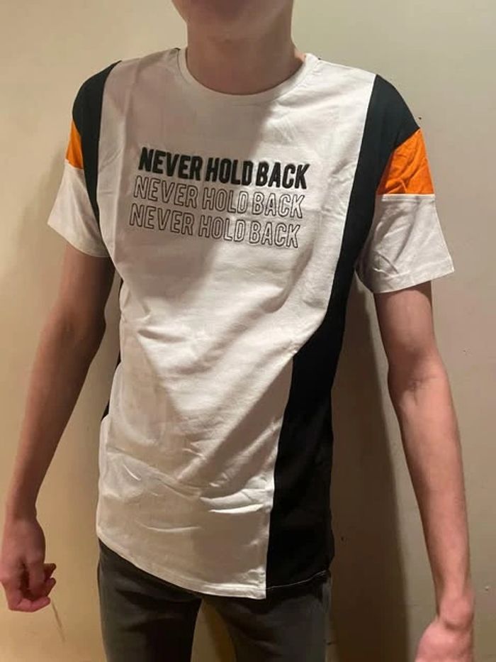 t-shirt manches courtes bleu, blanc, orange primark 12-13 ans "never hold back" 100% coton mesures : - largeur épaules : 37 cm - largeur aisselles : 48 cm - largeur bas : 47 cm - longueur 64 cm fabriqué en Inde (25) #tshirt #tshirtprimark #primark #tshirt1213ans #1213ans #primark1213ans #tshirtgarcon #tshirtprimarkgarcon #garcon #tshirt13ans #13ans #garcon #tshirt13 #taille13ans #taille13 #tshirtgarcon13ans #tshirtgarcon13 #garcon13ans #garcon13
