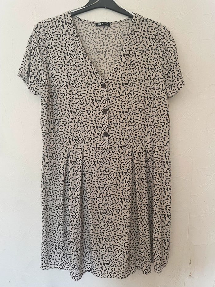 robe crème / blanc et noire 3 boutons devant manches courtes TEX 2XL 100% viscose fabriqué au Sri Lanka portée 1 seule fois mesures : - largeur épaules : 41,5 cm - largeur aisselle : 56 cm - longueur dos : 88 cm - longueur devant 71 cm (4) #robe #robefemme #robetex #tex #femme #robegrandetaille #robe2xl #2xl #robefemme2xl #robetex2xl #tex2xl #femme2xl #grandetaille #robegrandetaille2xl #grandetaille2xl #taille2xl