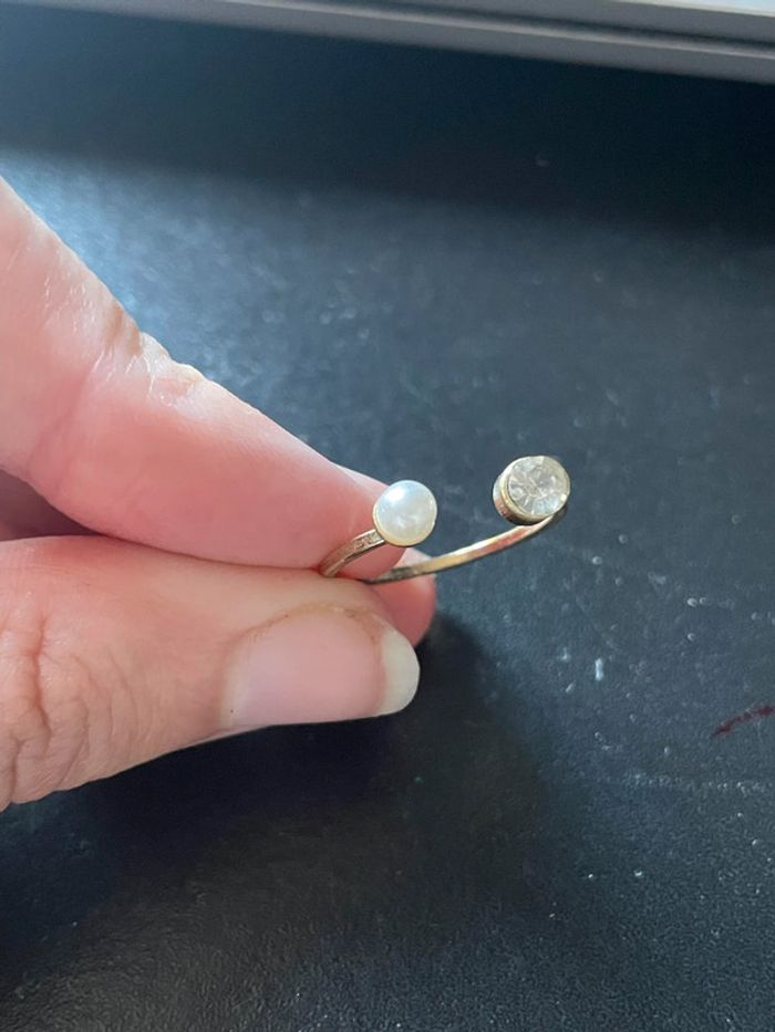 bague doré avec perle et strass ajustable (48) #bague #baguedoré #doré