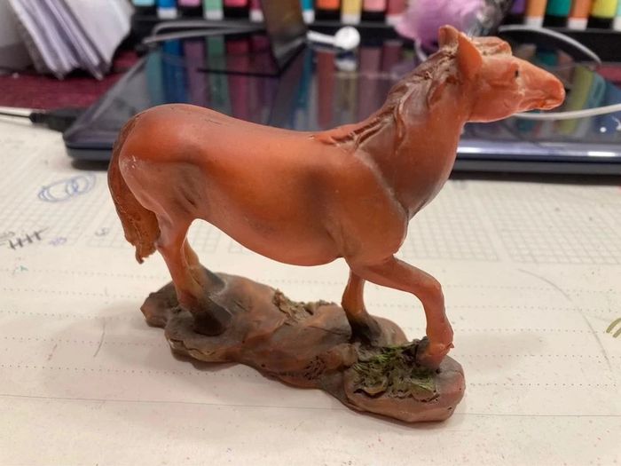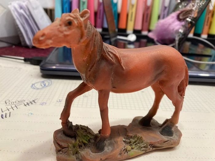 figurine cheval marron clair longueur : 9 cmm hauteur : 9 cm épaisseur : 3 cm (7) #figurine #bibelot #cheval #statuette #figurinecheval