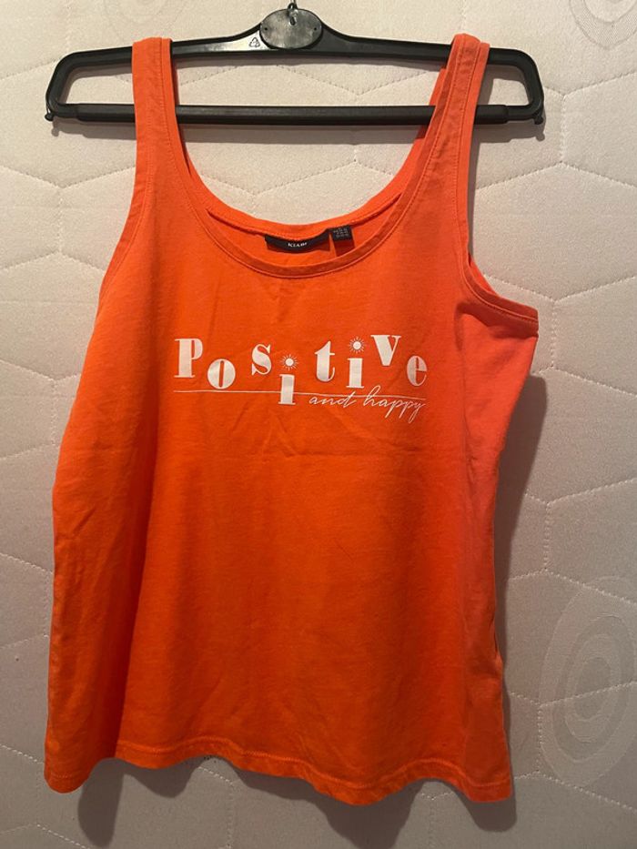 débardeur orange "positive and happy" kiabi taille S / 36 60% coton 40% polyester mesures : - largeur aisselles : 40 cm - largeur bas : 43 cm - longueur : 40 cm fabriqué au bangladesh (84) #debardeur #debardeurorange #debardeurfemme #debardeurkiabi #debardeur36 #debardeurS #debardeurorange36 #debardeurorangeS #debardeurfemme36 #debardeurfemmeS #debardeurkiabi36 #debardeurkiabiS #positive #happy #kiabi #kiabi36 #kiabiS #femme #femme36 #femmeS