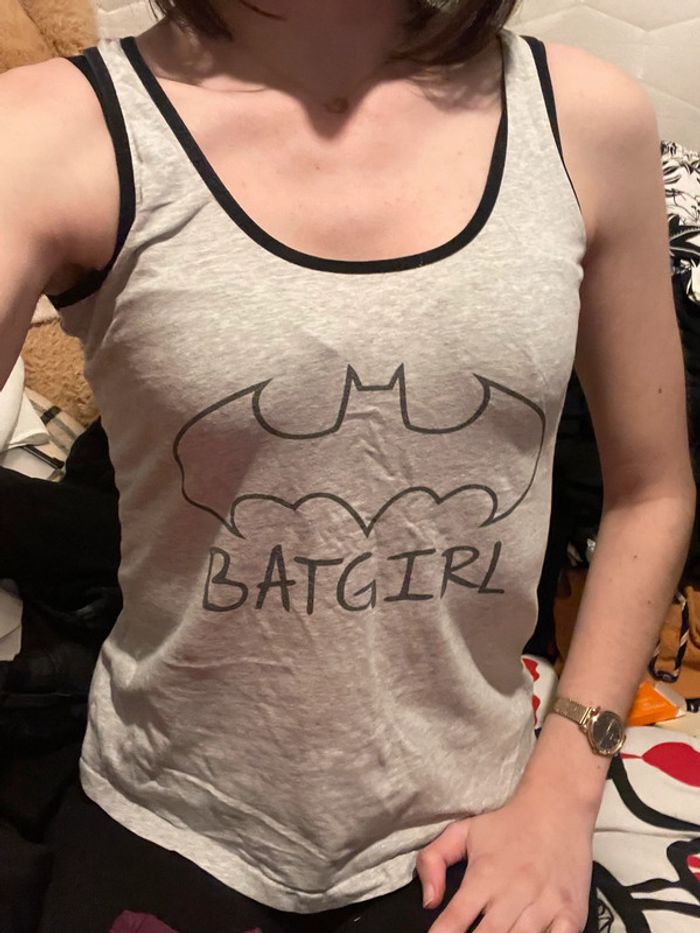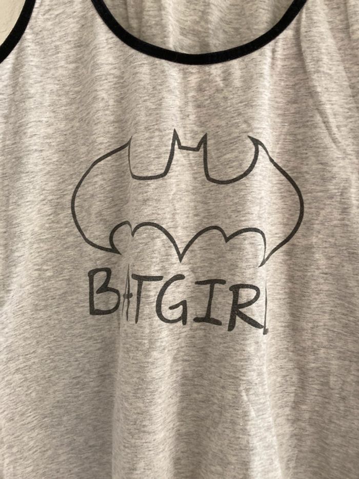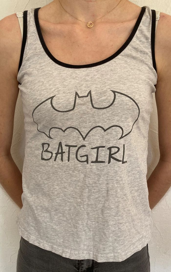 Débardeur Gris et noir Batgirl élastique taille XS-S / 34-36 Batman 95% coton 5% élasthanne mesures : - largeur aisselles : 39 cm - bas : 44 cm - longueur : 51 cm fabriqué en chine (4) #debardeur #debardeurfemme #debardeur34 #debardeur36 #debardeurfemme34 #debardeurfemme36 #tshirt #tshirtfemme #debardeur34 #haut #hautfemme #batman #batgirl #tailleXSS #tailleXS #tailleS
