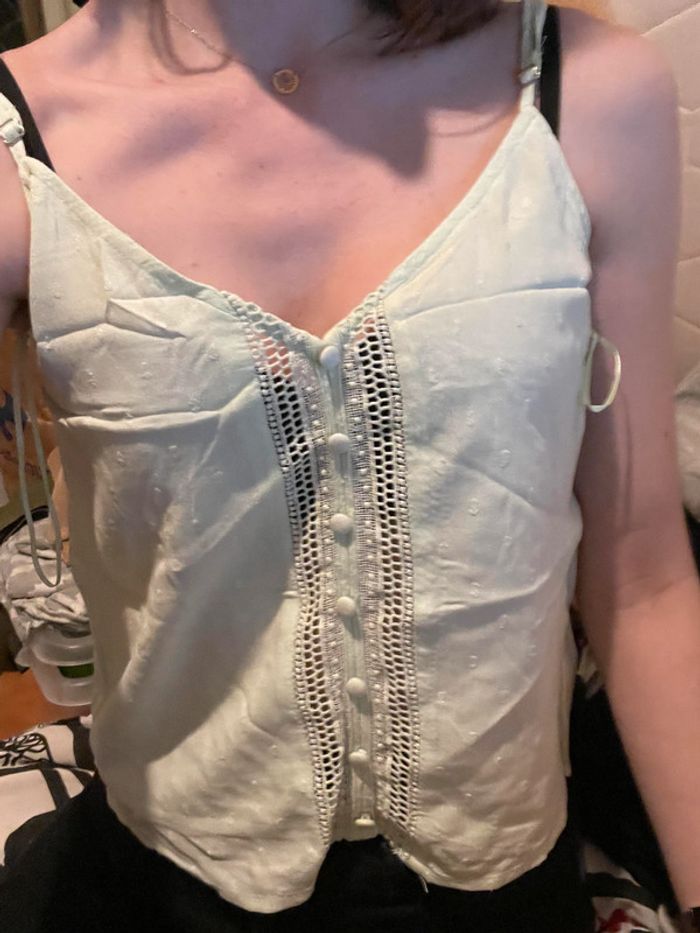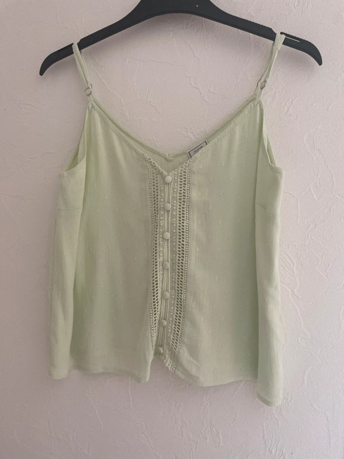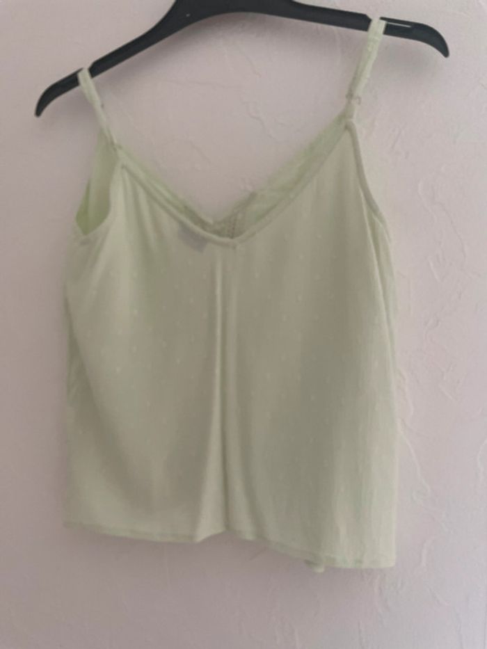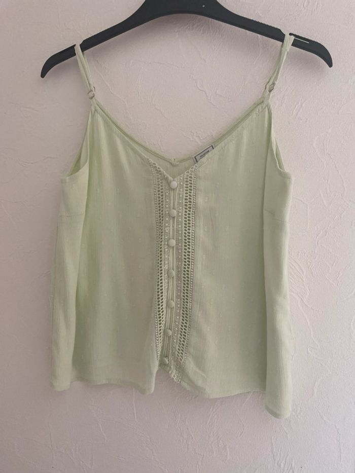 débardeur bretelles réglables ajourée devant col V vert clair taille 34 / XS pimkie viscose et coton mesures : - largeur aisselles : 42 cm - largeur bas : 47 cm - longueur : 27 cm fabriqué en Inde (66) #debardeur #debardeurfemme #debardeur34 #debardeurfemme34 #femme #femme34 #haut #haut34 #hautfemme #hautfemme34 #blouse #blouse34 #blousefemme #blousefemme34 #tshirt #thsirt34 #tshirtfemme #tshirtfemme34 #pimkie #pimkie34 #debardeurXS #debardeurfemmeXS #femmeXS #hautXS #hautfemmeXS #blouseXS #blousefemmeXS #tshirtXS #thsirtfemmeXS #pimkieXS
