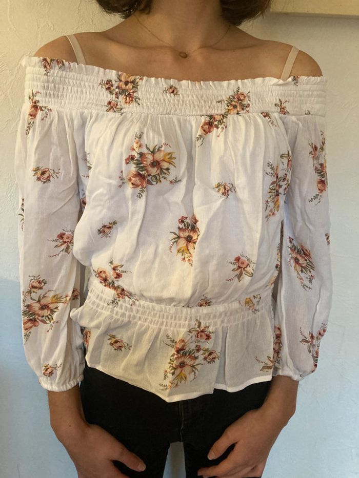Haut épaules dénudées blanc fleuri manches 3/4 cintré à la taille taille 36 / S Hollister mesures : - largeur épaules : 44 à 54 cm - largeur aisselles : 45 cm - largeur taille 31 à 42 cm - longueur : 43 cm - longueur manches (depuis aisselle) 31 cm fabriqué en Inde (40) #haut #hautepaulesdenudees #hollister #hauthollister #fleuri #hautfleuri #fleurs #haut36 #hauthollister36 #hollister36 #hautS #hautepaulesdenudees36 #hautepaulesdenudeesS #hollisterS #hollisterfemme #hollisterfemme36 #hollisterfemmeS #hauthollisterS #hautfleuri36 #hautfleuriS