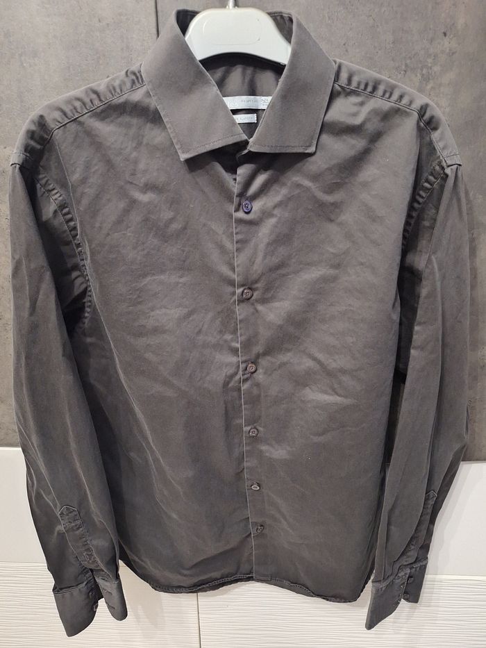 Jolie chemise manches longues noire, double boutons aux poignets, coupe ajustée, marque Jules, taille 4 41/42, peu portée en très bon état