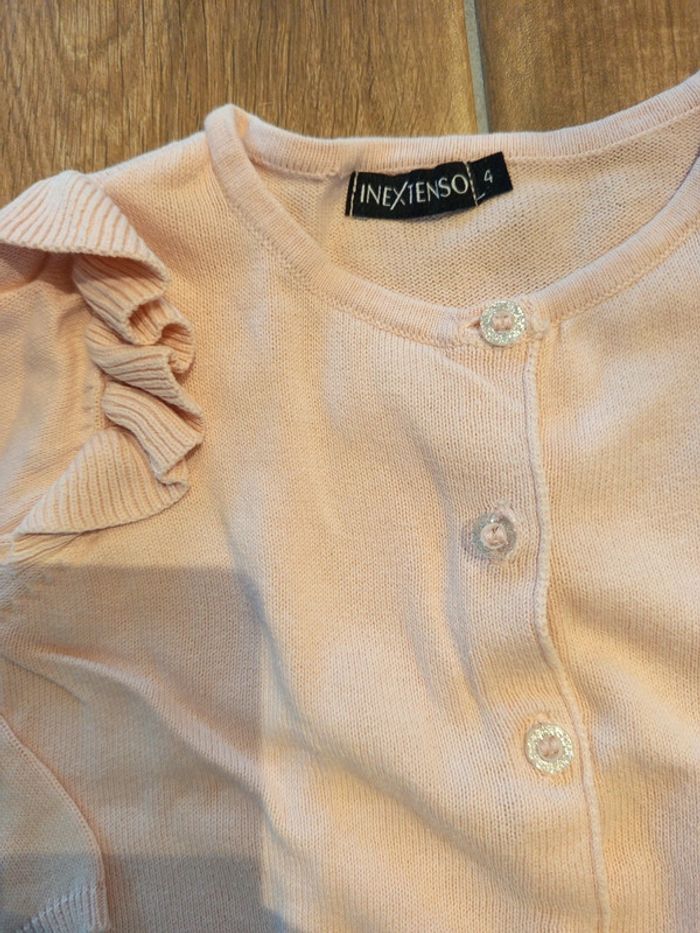 Ensemble jupe écru liberty+ tee shirt rose+ gilet volants 4 ans - photo numéro 6