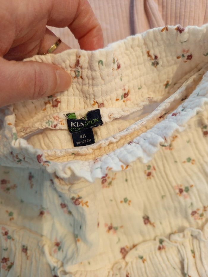 Ensemble jupe écru liberty+ tee shirt rose+ gilet volants 4 ans - photo numéro 7