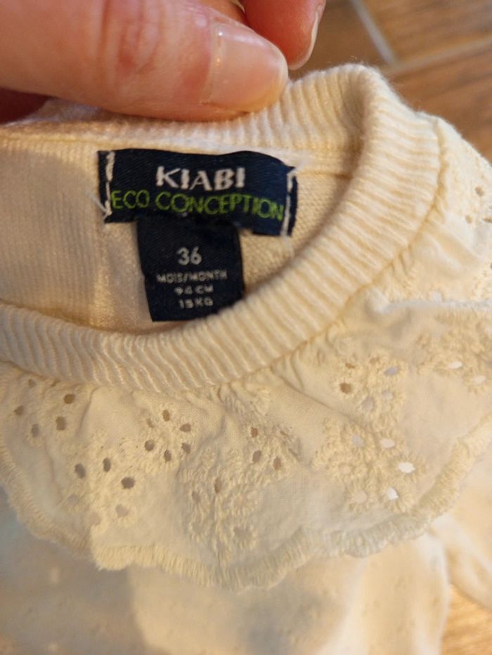 Lot 3 ans sarouel fleuri+ tee shirt vert d'eau+ 2 pulls: rose et écru pointelle - photo numéro 10