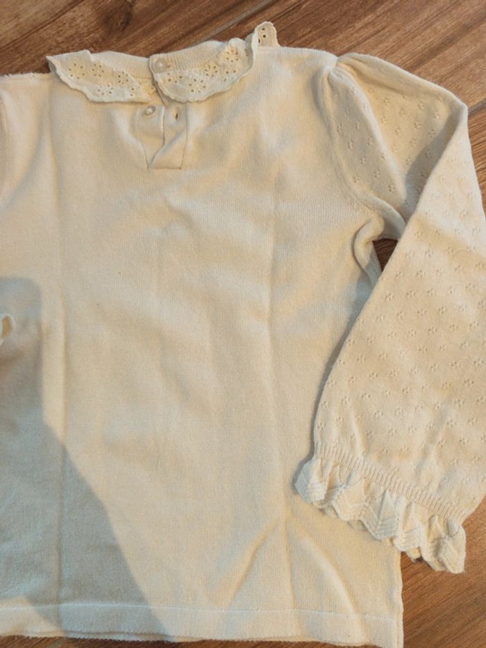 Lot 3 ans sarouel fleuri+ tee shirt vert d'eau+ 2 pulls: rose et écru pointelle - photo numéro 9