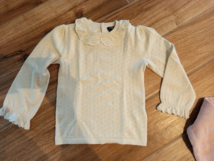 Lot 3 ans sarouel fleuri+ tee shirt vert d'eau+ 2 pulls: rose et écru pointelle - photo numéro 8
