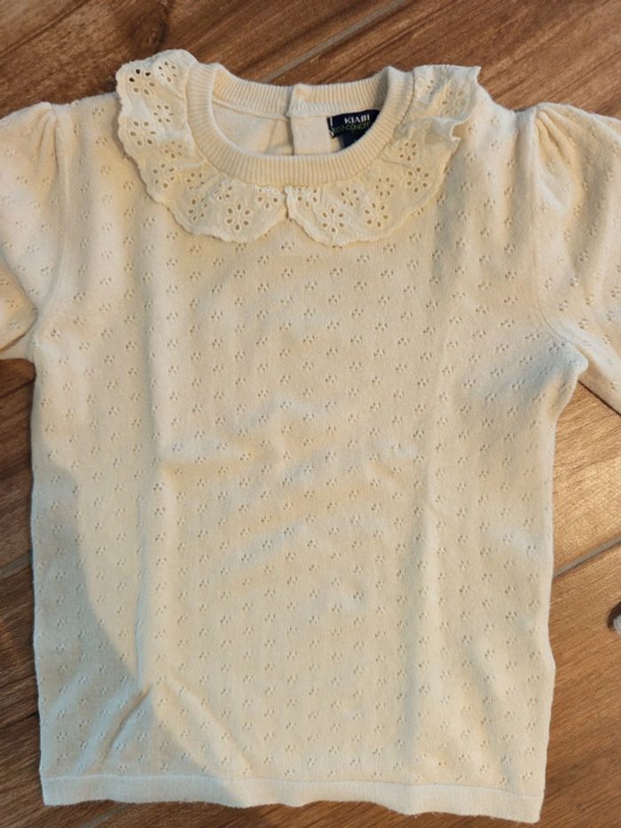 Lot 3 ans sarouel fleuri+ tee shirt vert d'eau+ 2 pulls: rose et écru pointelle - photo numéro 6