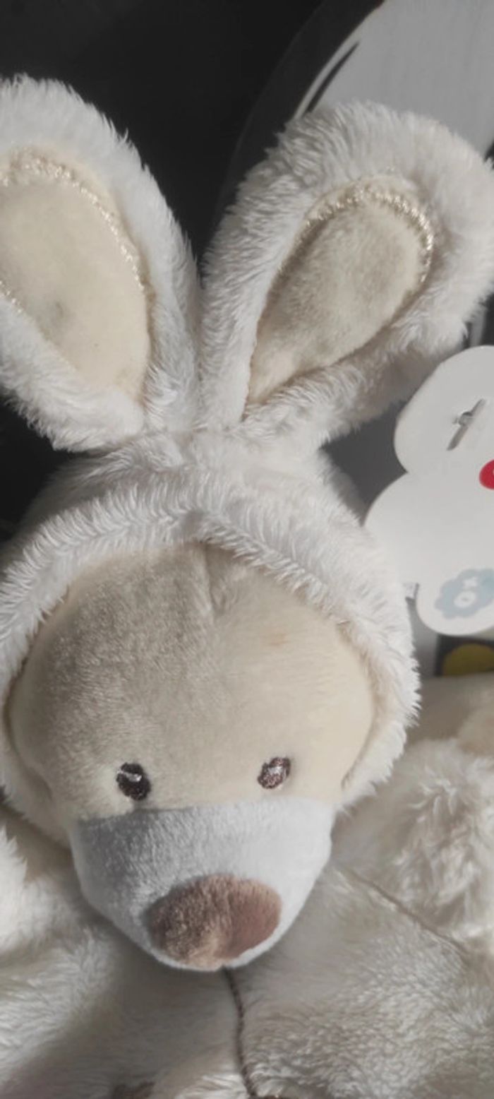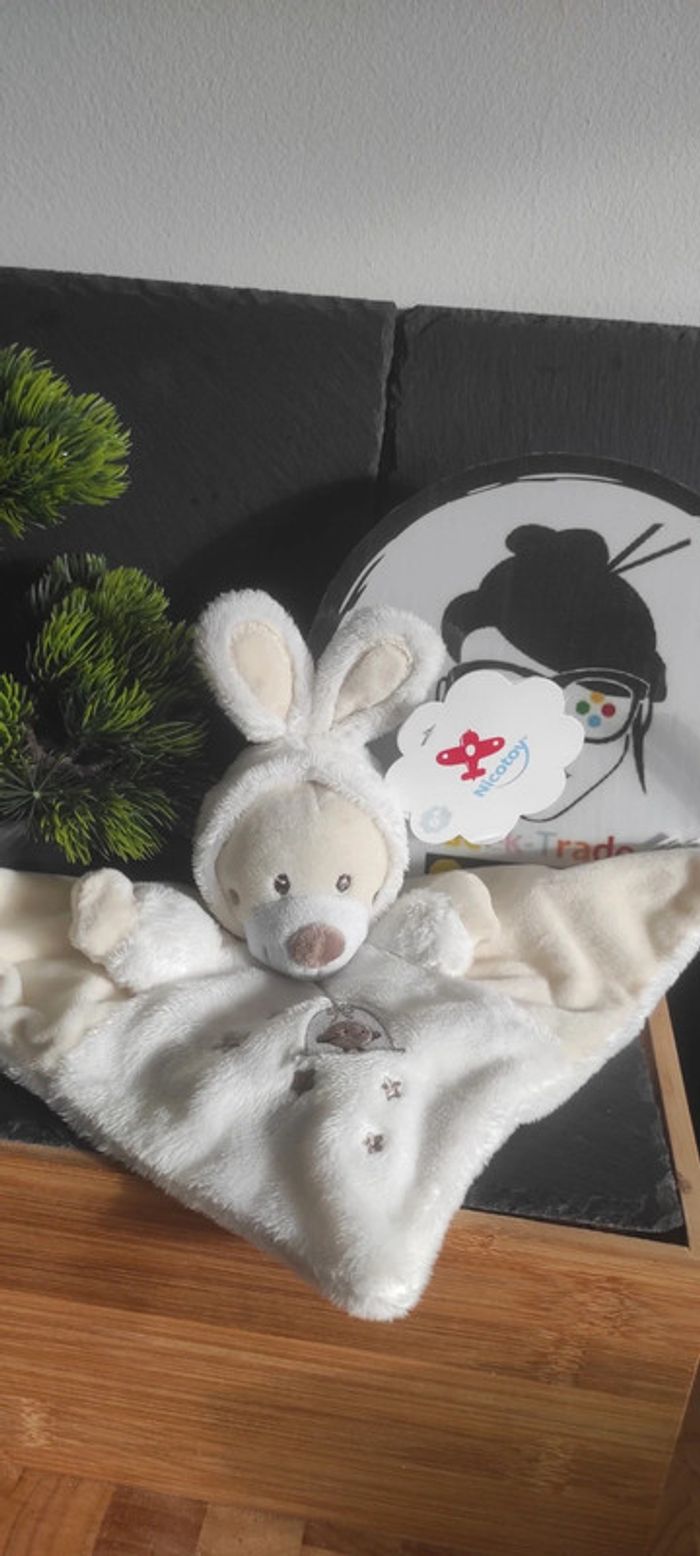 Ours nicotoy simba doudou carré blanc capuche lapin oiseau costume deguisement