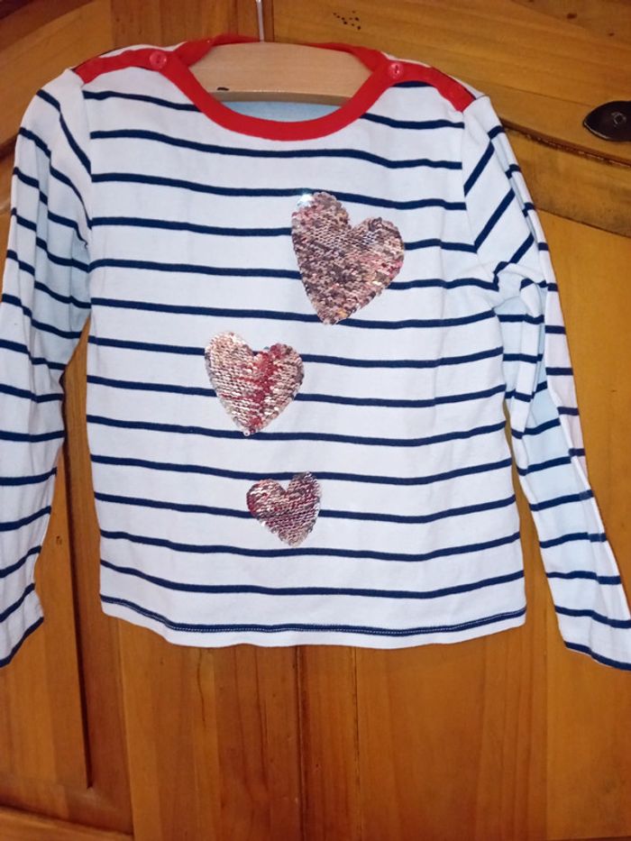 Tee-shirt à manches longues taille 3ans , très bon etat Porté 1 fois Les sequins des cœurs changent de couleurs quand ont les tournent. #faufautine2021vetementfille3ans