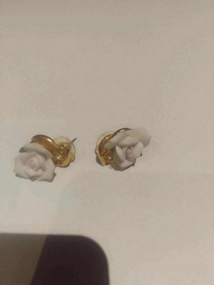 Boucles d'oreilles motif roses en céramique 3€ Bon etat #faufautine2021bijoux