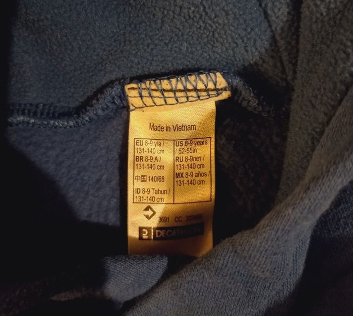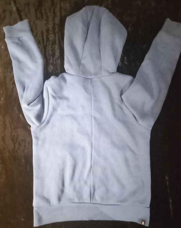 Sweat enfant 8-9 ans, en très bon état, couleur bleu, marque décathlon, avec capuche.