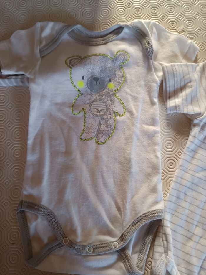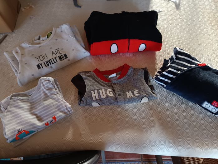 Lots vêtements taille 9 mois Marques différentes 2 bodies manche courte neuf Un bodie manche longue Un pyjama Un ensemble velour Une combinaison mickey Une veste Mickey