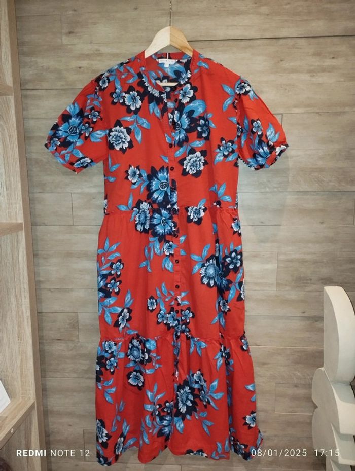 Robe midi Tommy Hilfiger rouge fleuri T36 - photo numéro 1