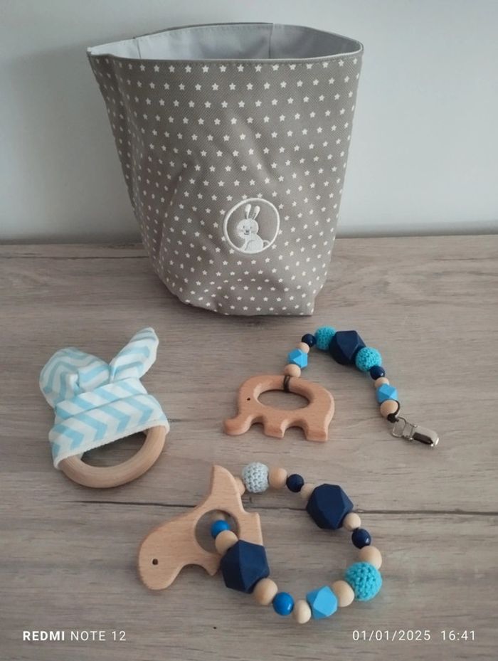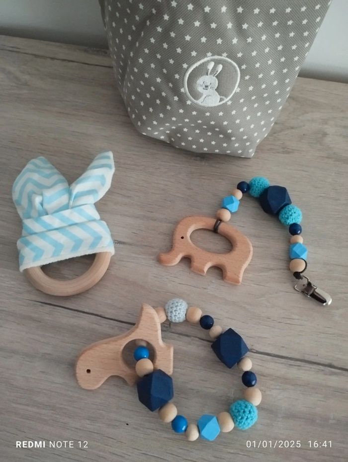 Ensemble cadeau naissance bois bébé +trousse rangement rivadouce neuf - photo numéro 1