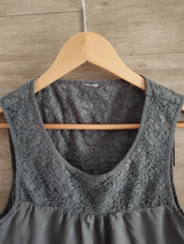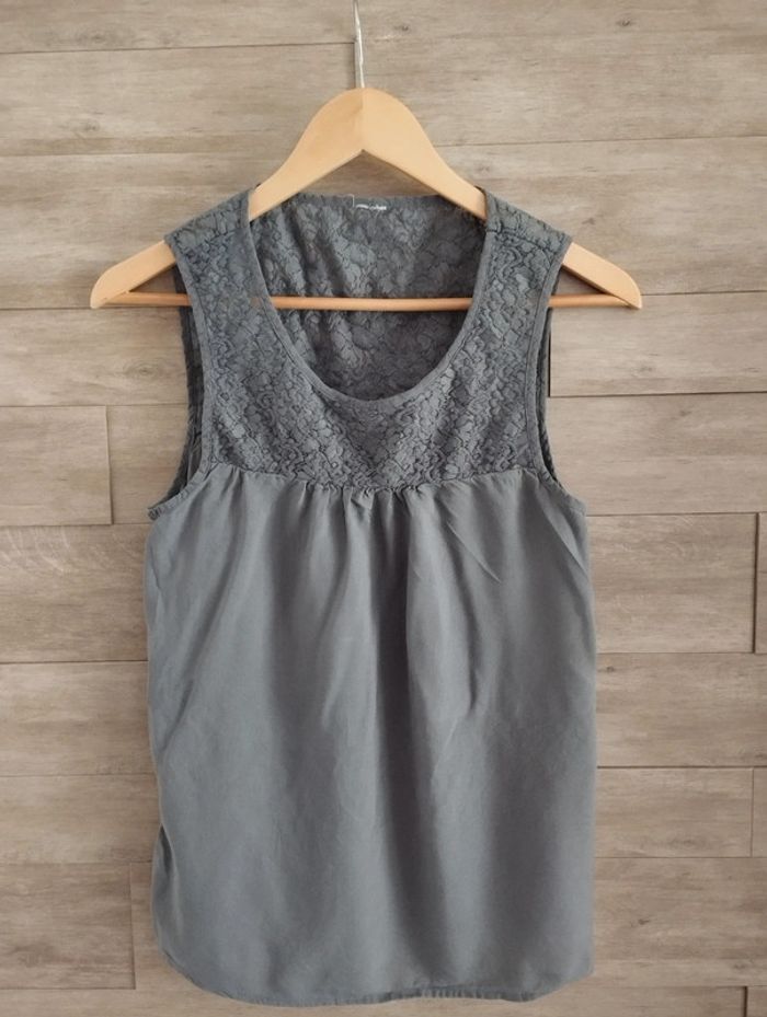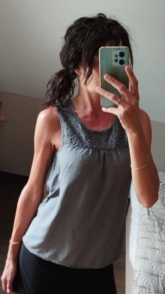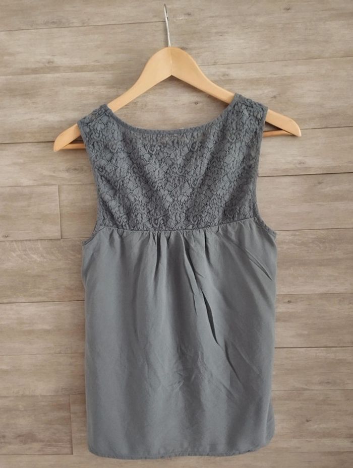 Blouse Only gris haut dentelle TM Longueur 62,5cm Largeur aisselles 44,5cm