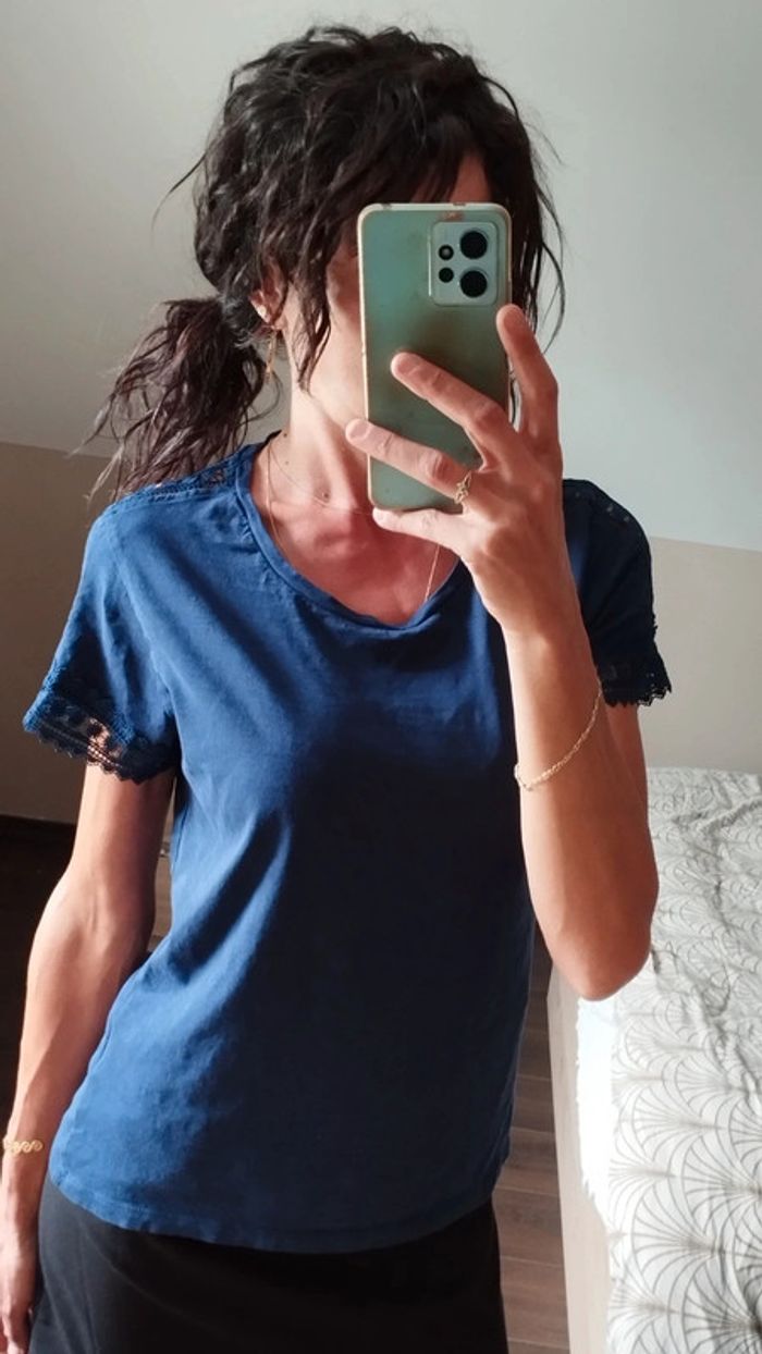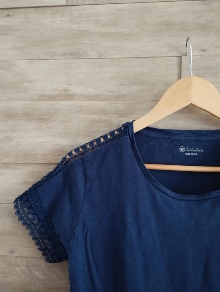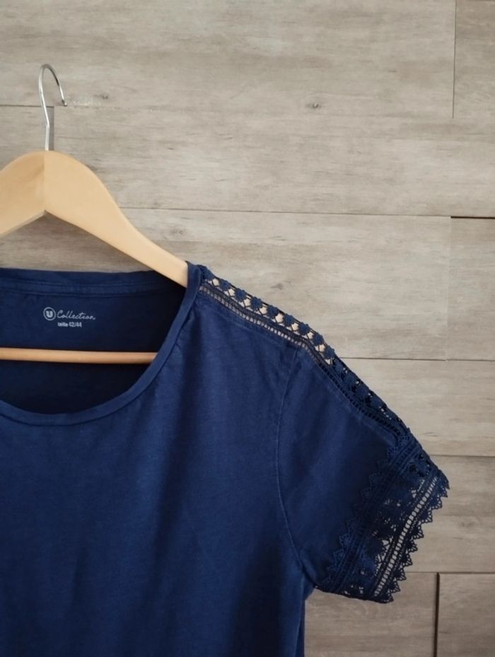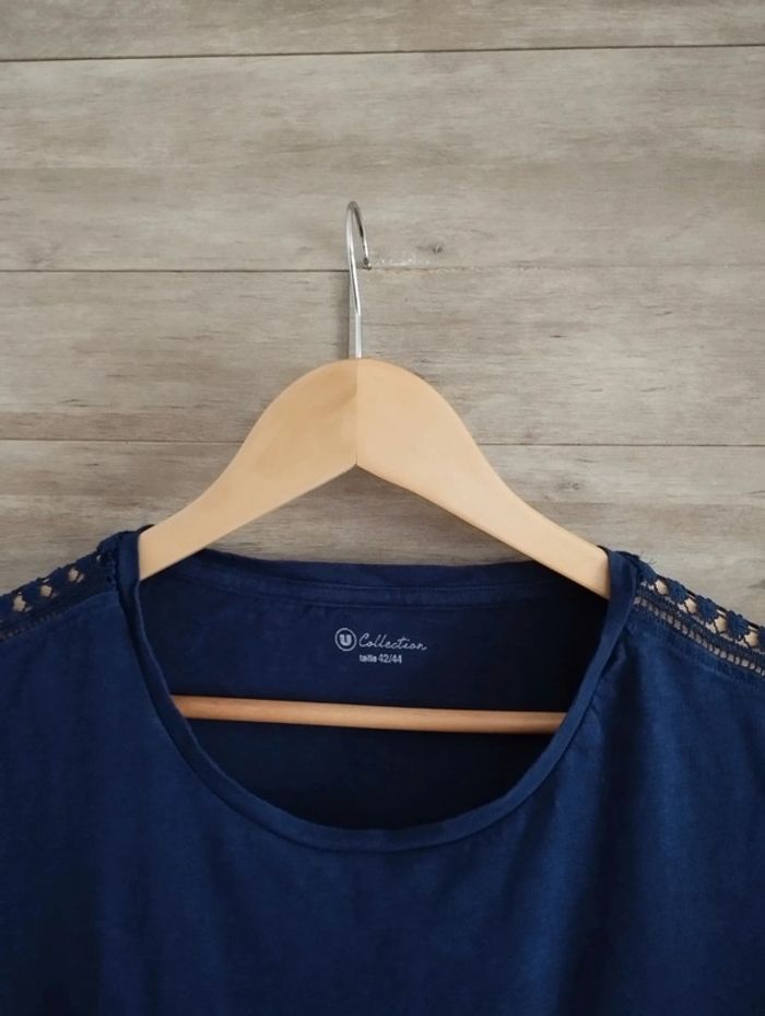 T shirt femme U collection bleu marine détails ajouré T42/44 très bon état Longueur 62cm Largeur aisselles 49cm