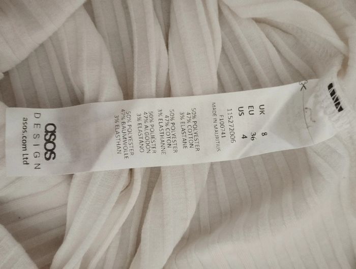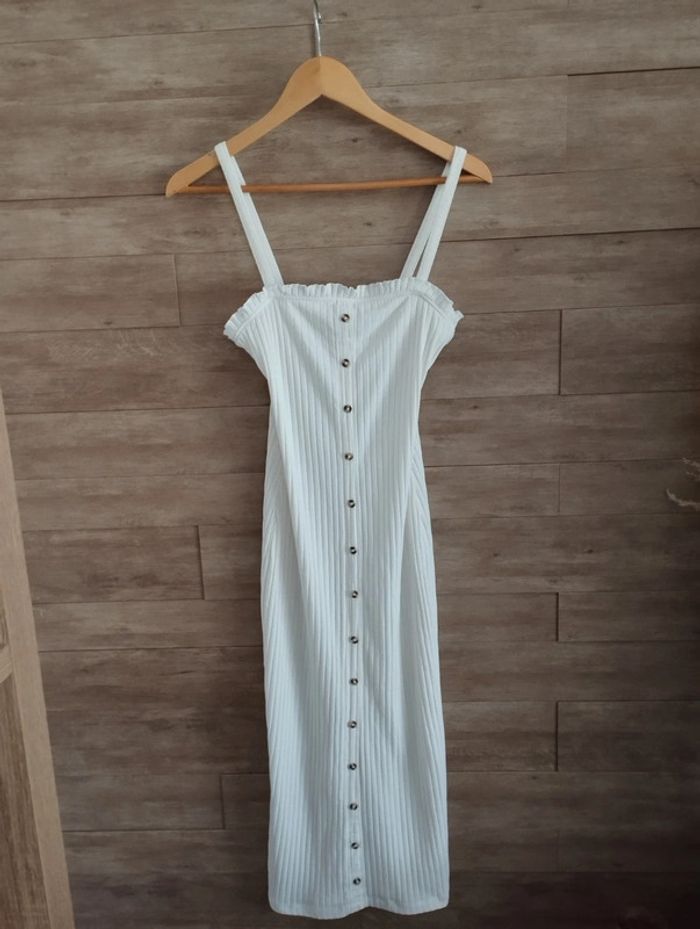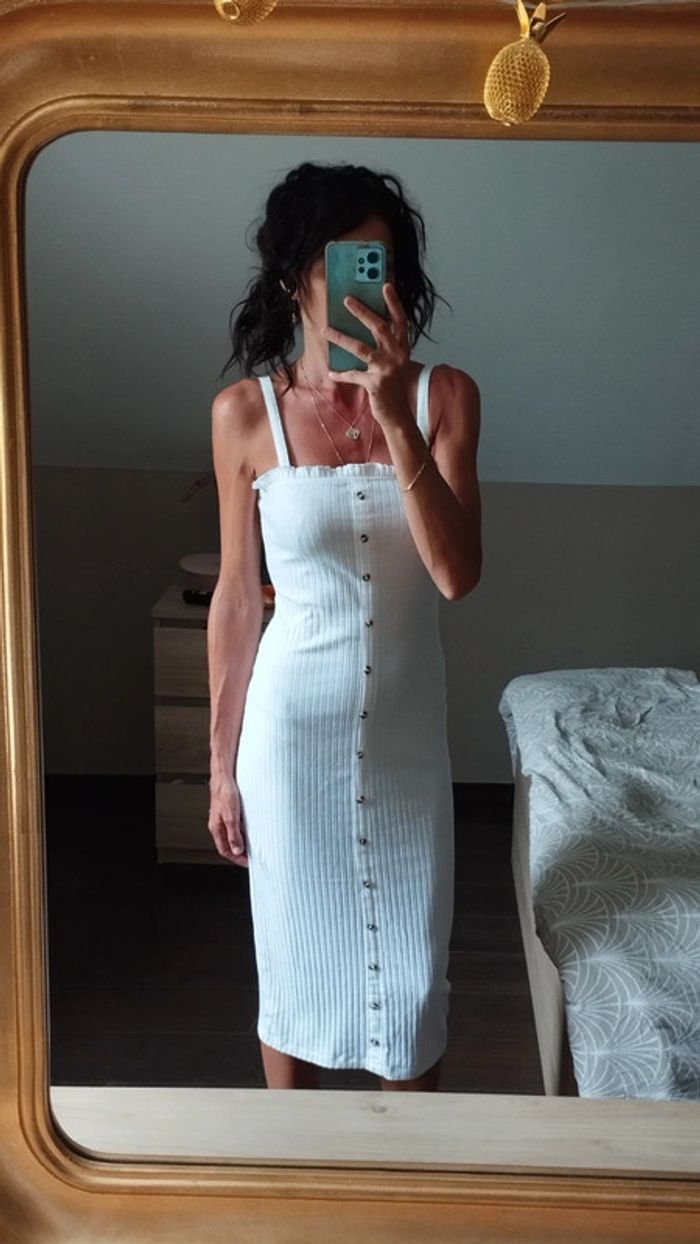 Robe côtelé longue moulante faux boutons Asos design blanc T36 très bon état Longueur 113cm Largeur aisselles 37cm