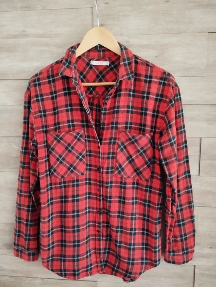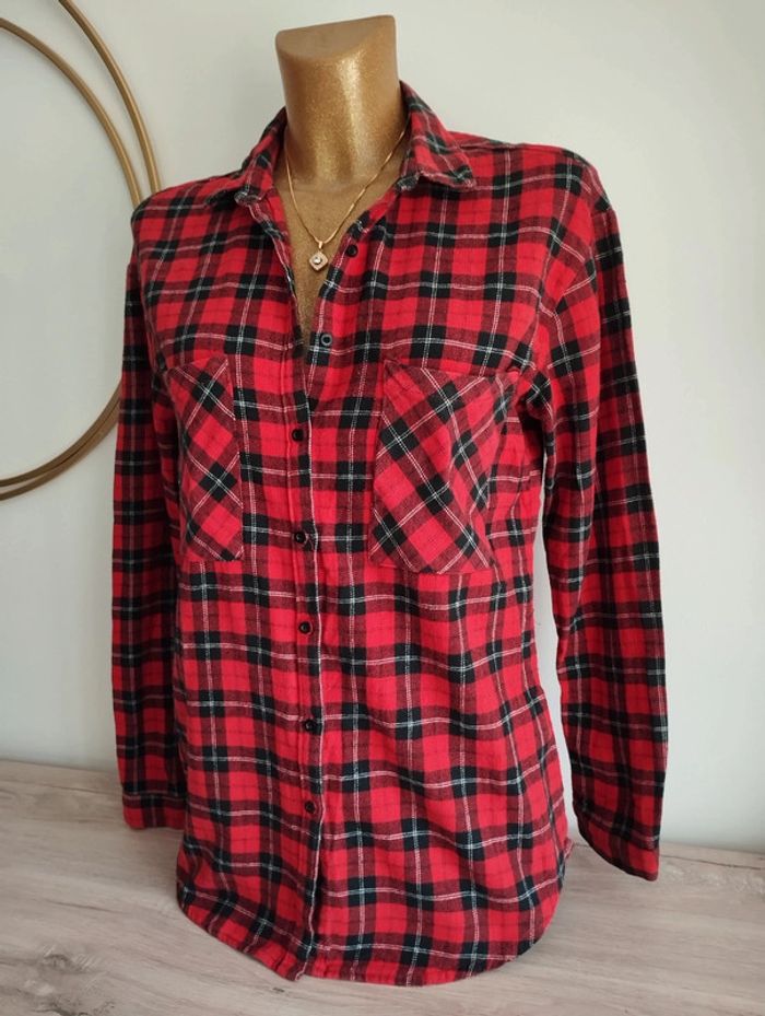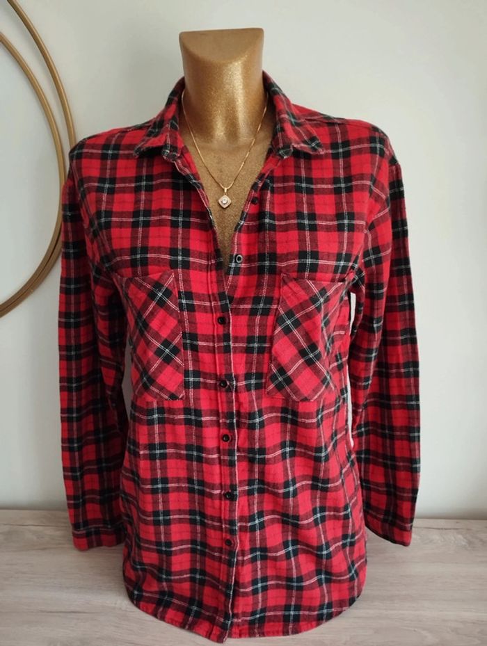 Chemise pull and Bear rouge carreaux taille M - photo numéro 1