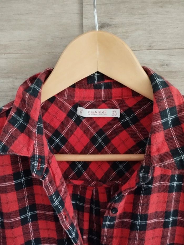 Chemise pull and Bear rouge carreaux taille M - photo numéro 3