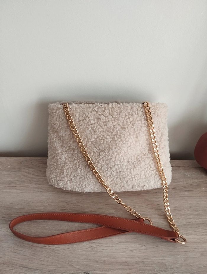 Sac bandoulière Eram simili cuir moumoute crème chaîne doré impeccable - photo numéro 9