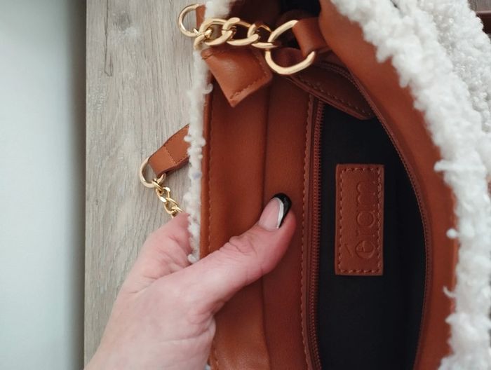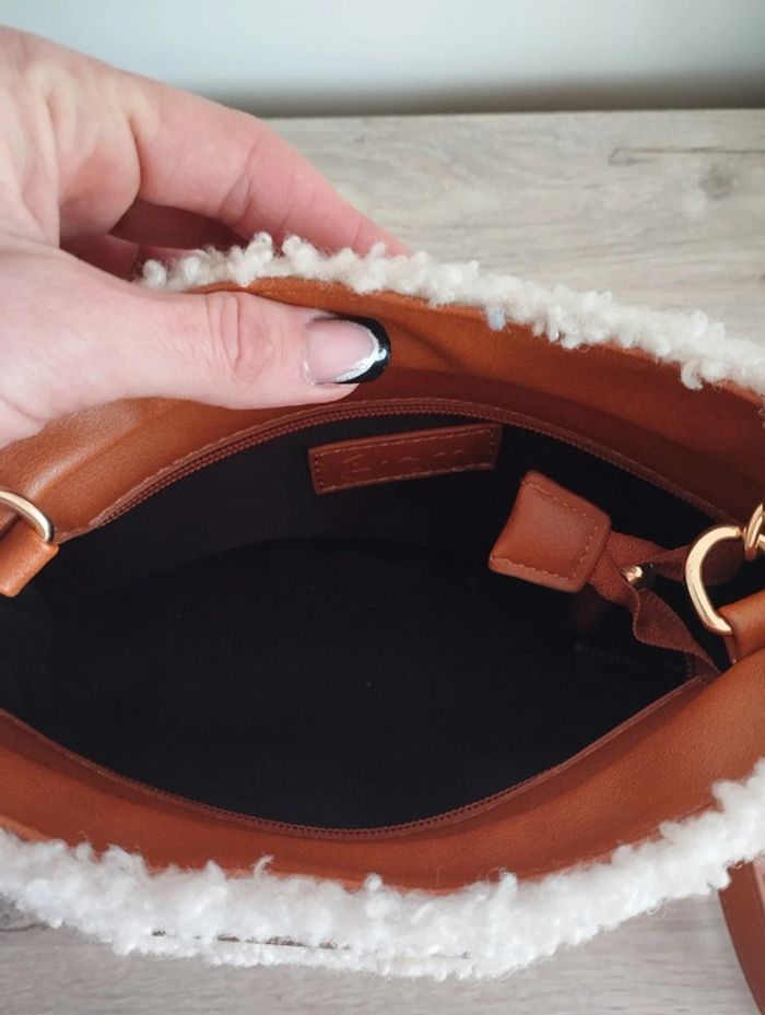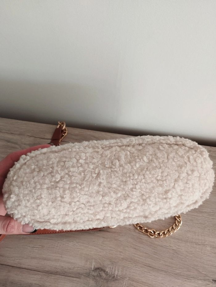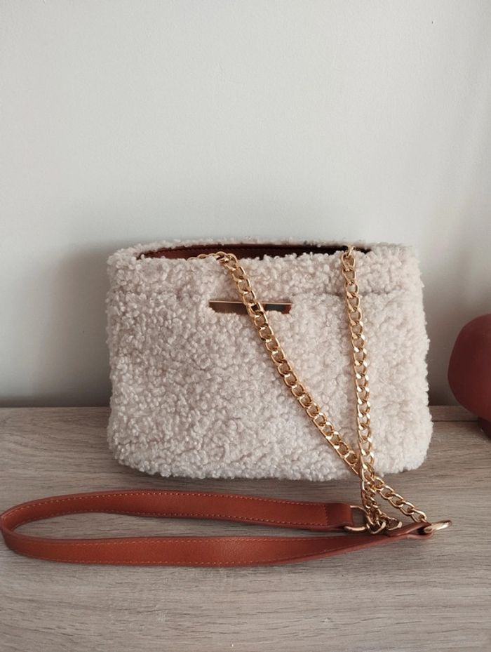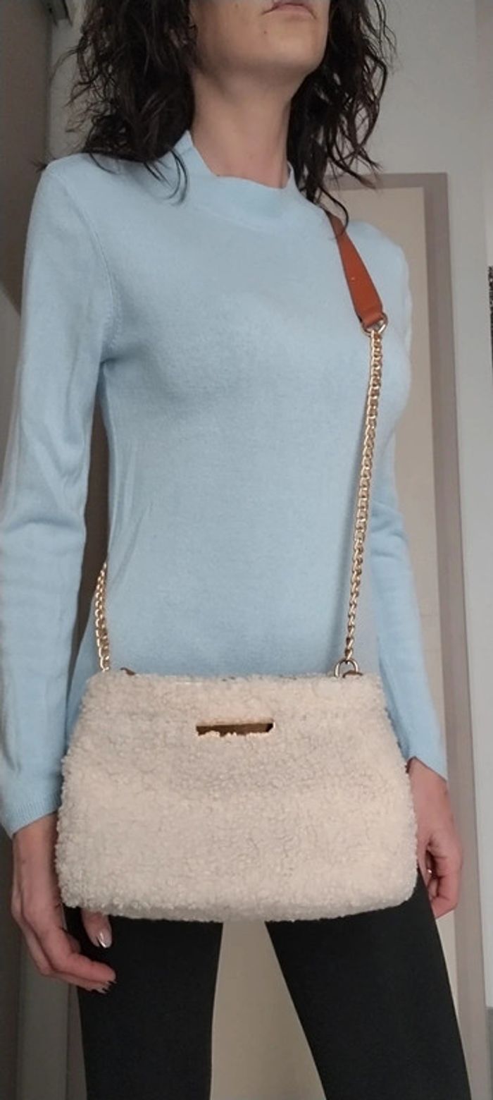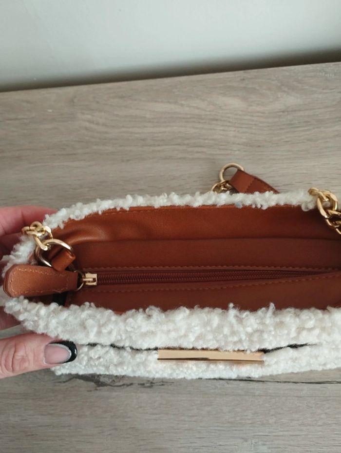 Sac bandoulière Eram simili cuir moumoute crème chaîne doré impeccable - photo numéro 5