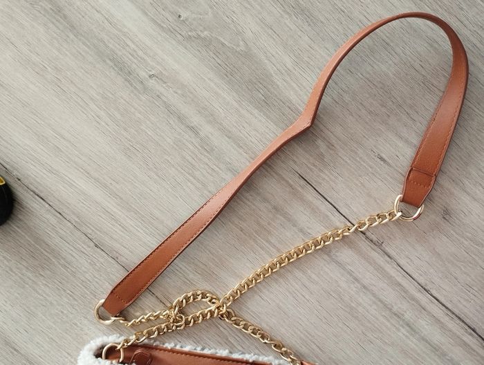 Sac bandoulière Eram simili cuir moumoute crème chaîne doré impeccable - photo numéro 8
