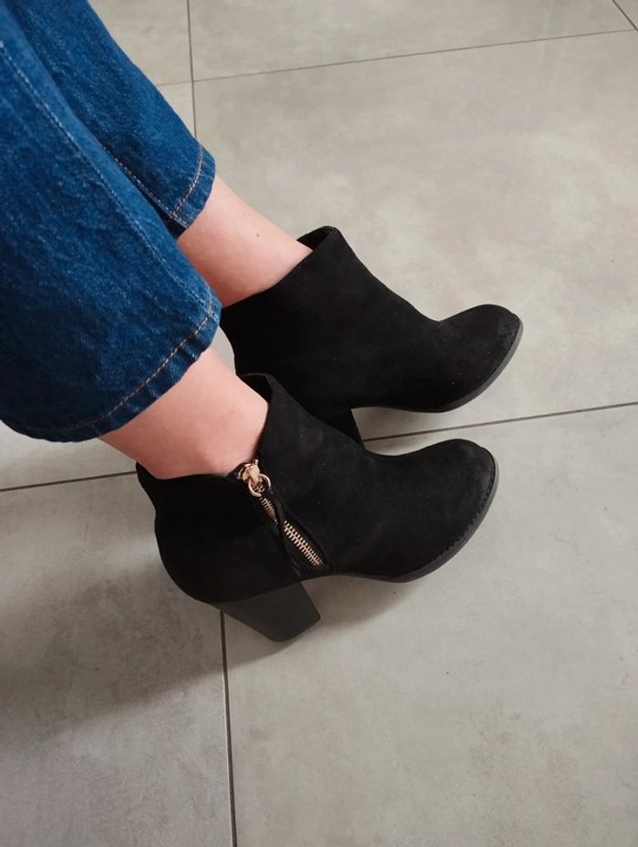 Paire bottines suédine noir talon noir T39 - photo numéro 1
