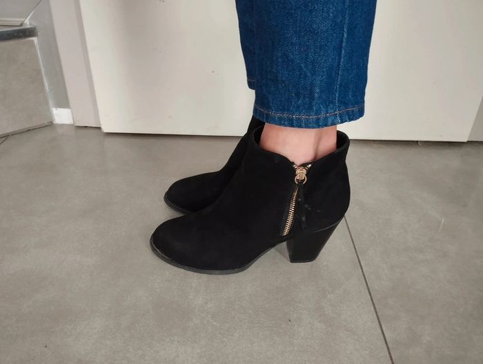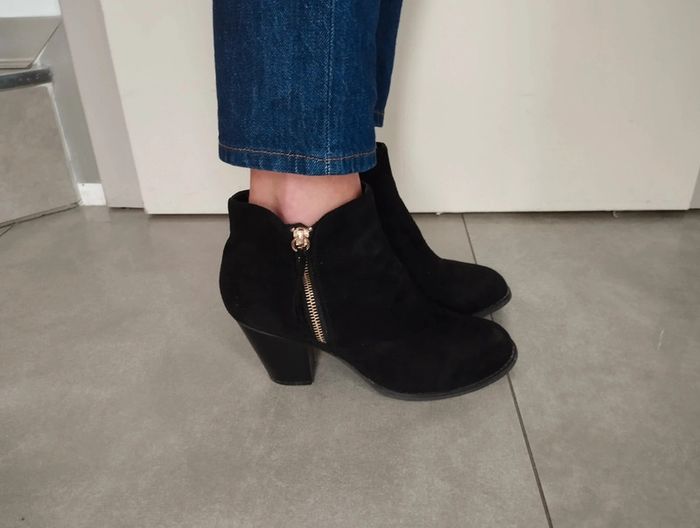 Paire bottines suédine noir talon noir T39 - photo numéro 2