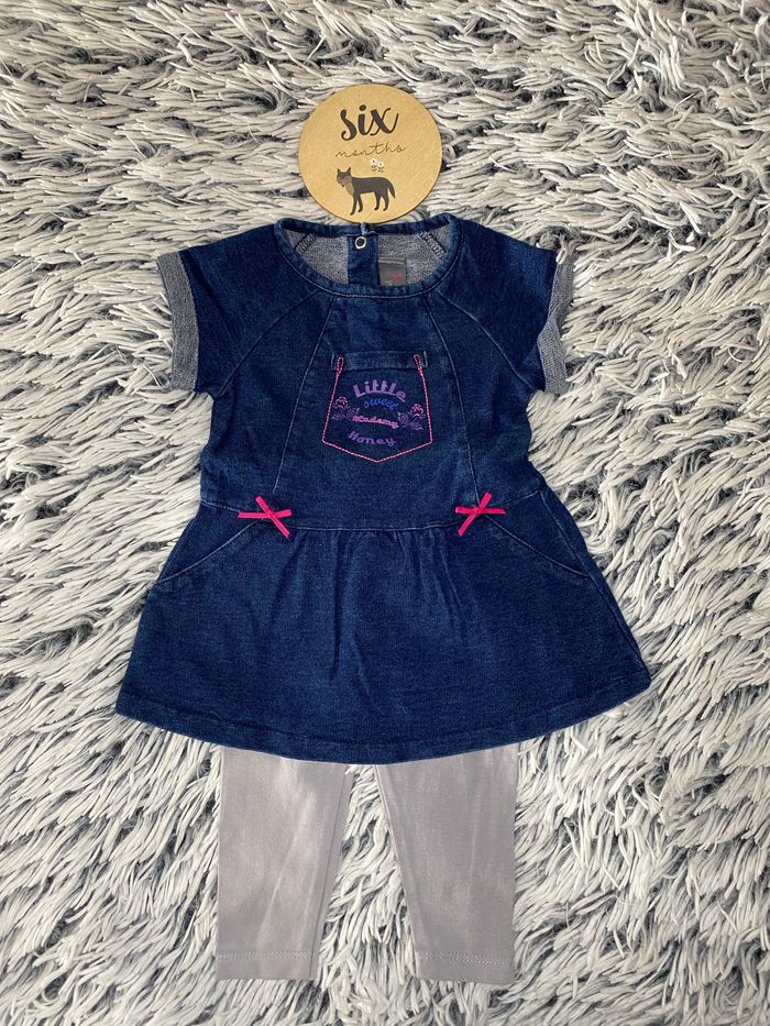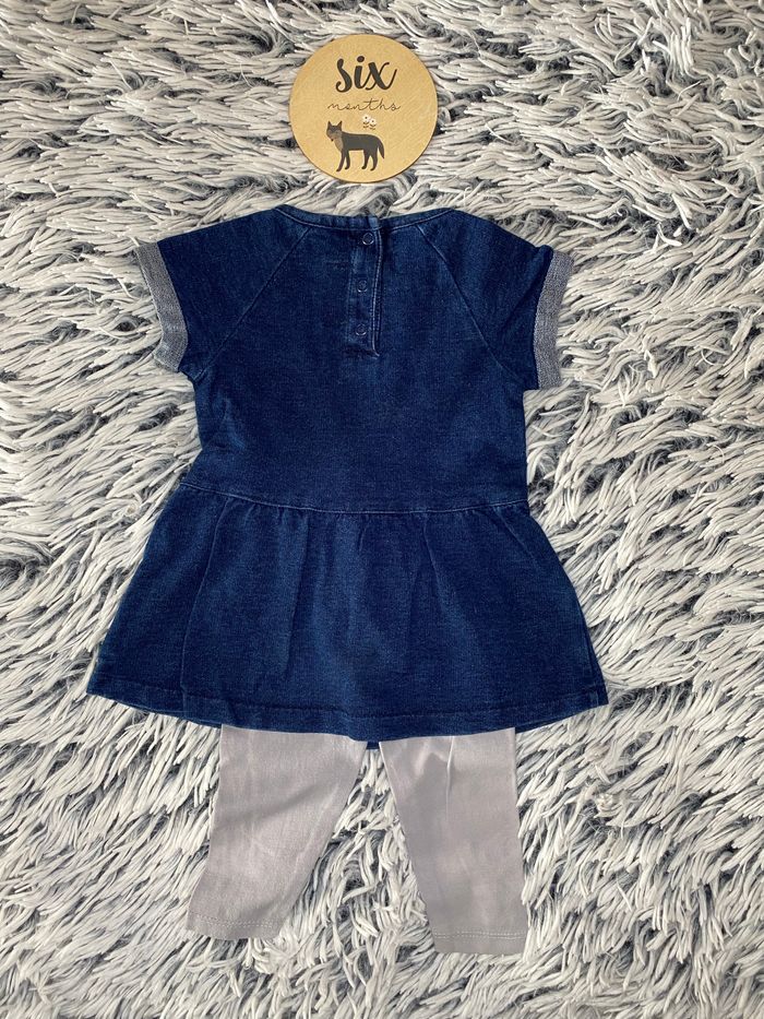 Robe en jean noeuds rose et son legging gris 6 mois orchestra