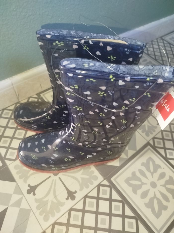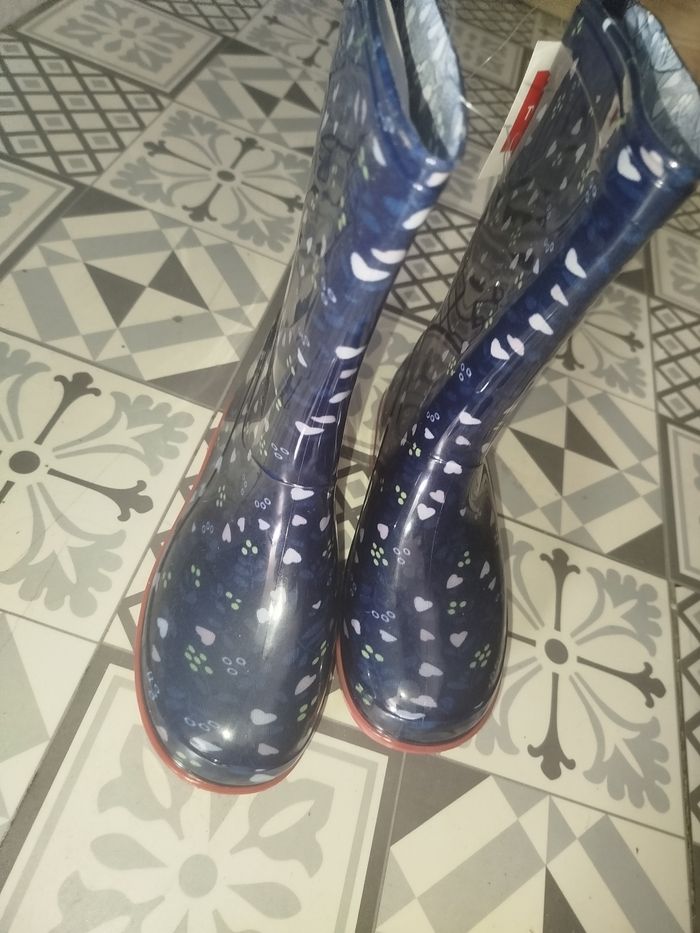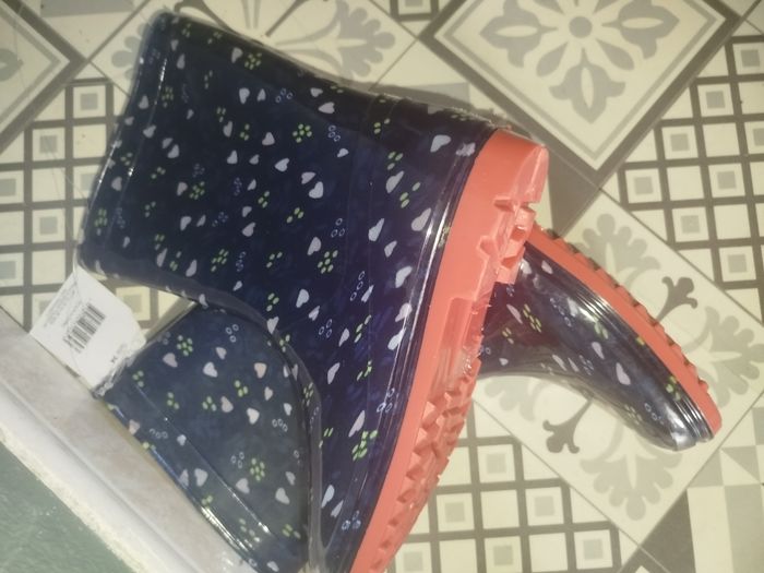 Les plus produit Insertion facile du pied Semelle intérieure moussée et amovible Tige montante souple et imperméable Talon et bout renforcés Si faciles à enfiler, dès que la météo devient humide, ces bottes de pluie pour fille font partie des équipements indispensables. Avec une tige montante, souple, imperméable, votre enfant va les adorer. On craque pour ce modèle fille petit cœur ❤️💓 qui met en scène aux grande oreilles avec un coeur dans les bras. À porter avec une tenue confortable et un ciré Pointure : 34 État : Neuf Jamais porté