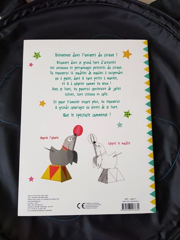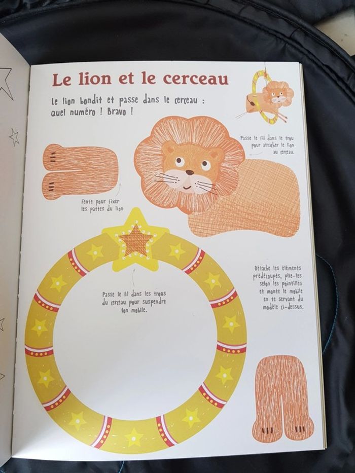 Livre de mobiles, montages et coloriages sur le thème du cirque 🦁, pas besoin de couper ni de coller (ISBN 9782298097634) - T. - NEUF seul un montage c'est détaché.
