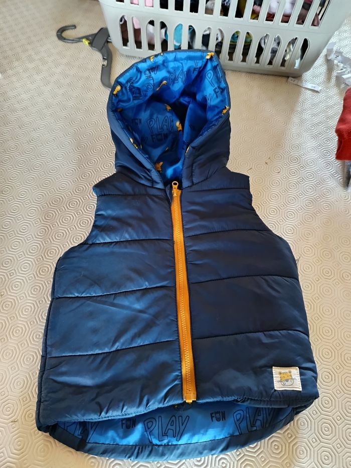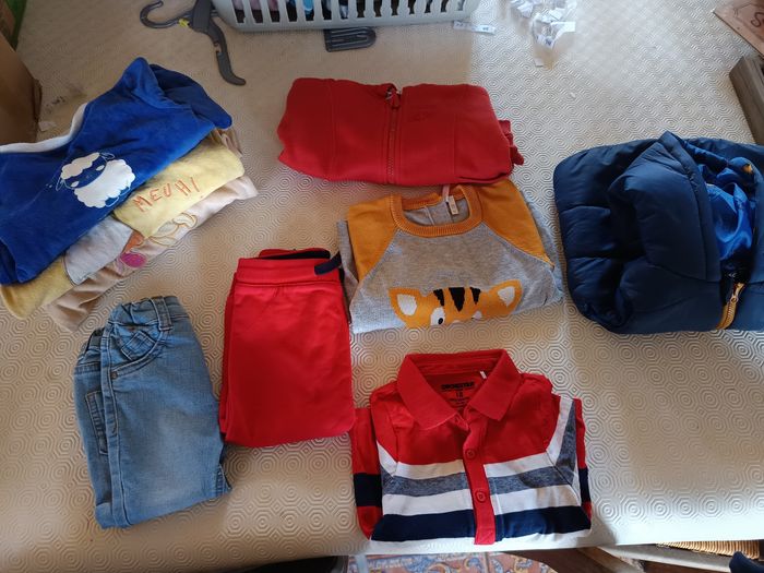 Lots vêtements taille 18 mois 3 pyjamas, le bleu taille 24 mois Manteau sans manche 2 haut Un jean Un jogging Une veste Marques différentes