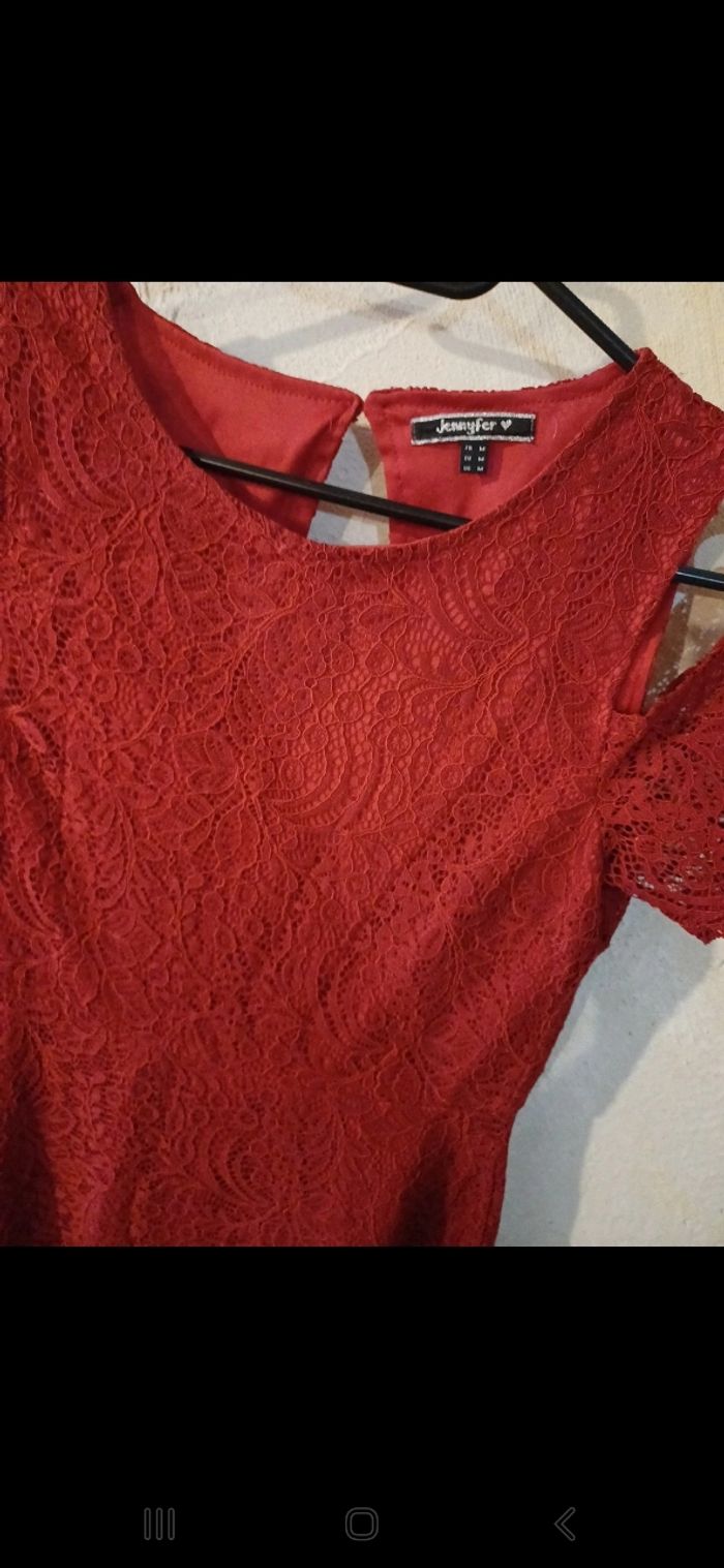 Très jolie robe en dentelle, doublée. Manches courtes. Zippée et boutonnée à l arrière. Portée une fois, en parfait état. Comme neuve. Longueur: 82 cm environ