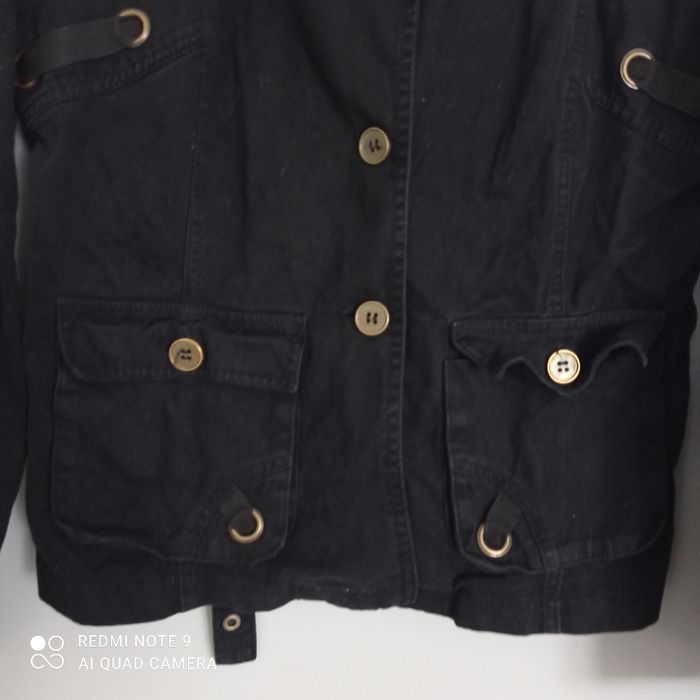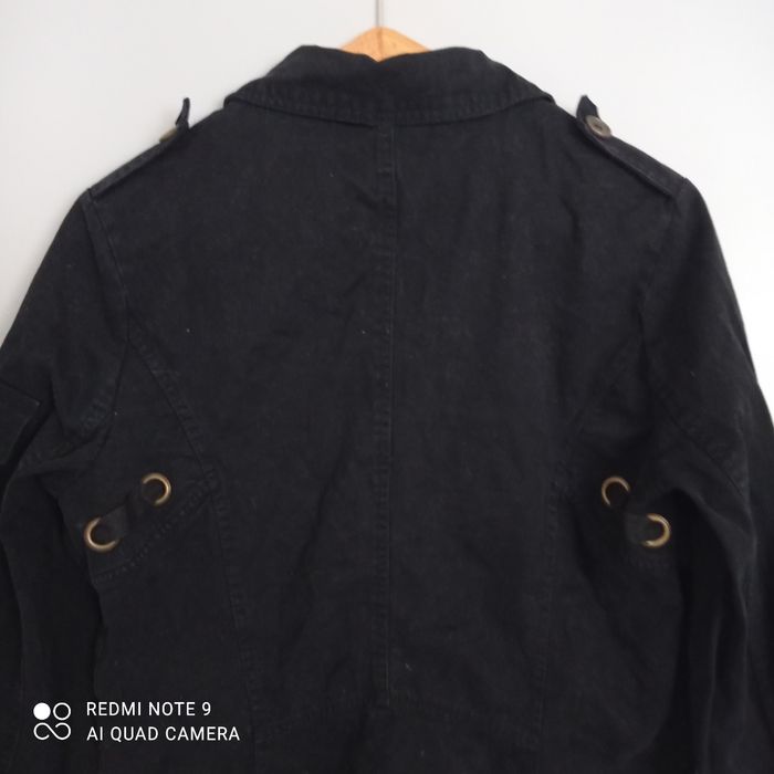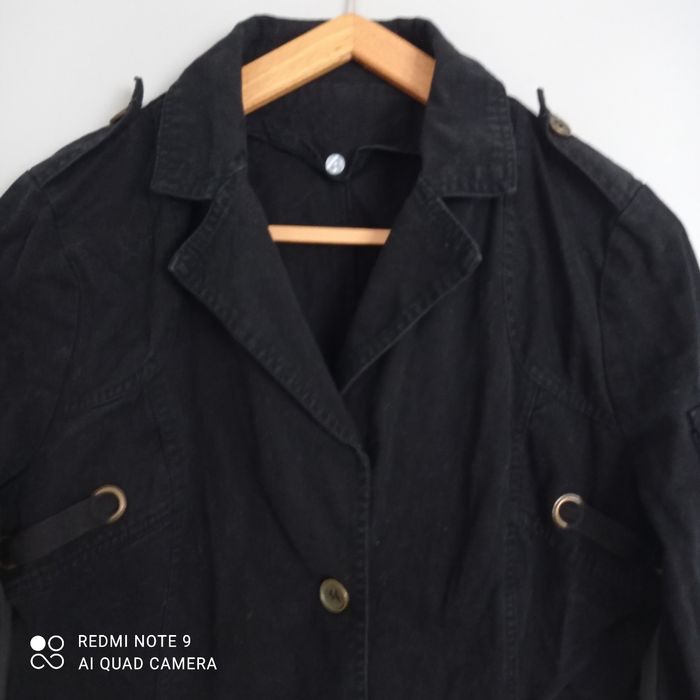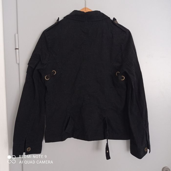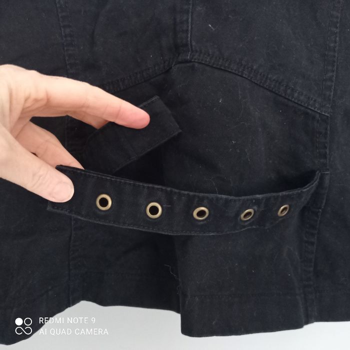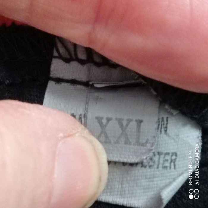 Coton et polyester. Étiqueté XXL mais selon moi taille plus petit. Voici les mesures prises à plat : épaules : 41cm, aisselles : 53cm, longueur : 64cm. La sangle au dos est cassée voir photos.
