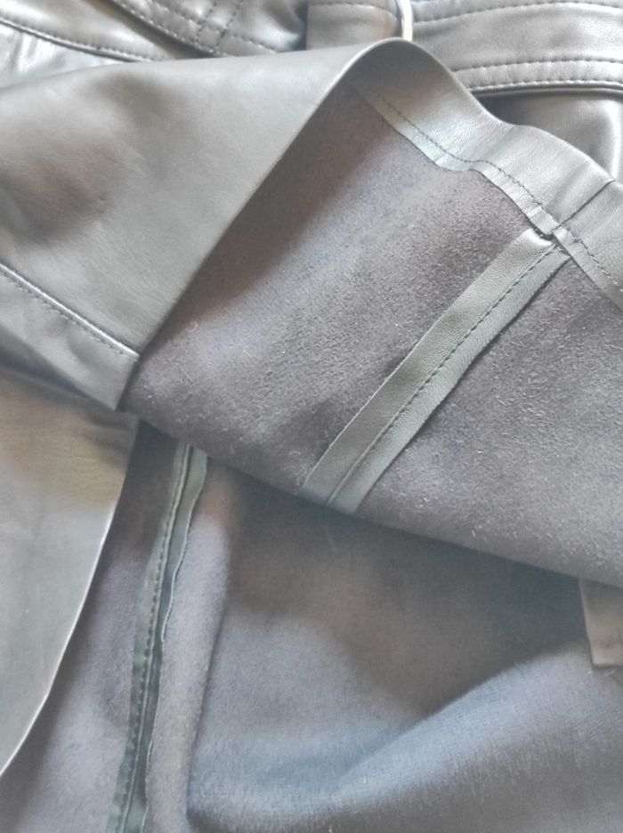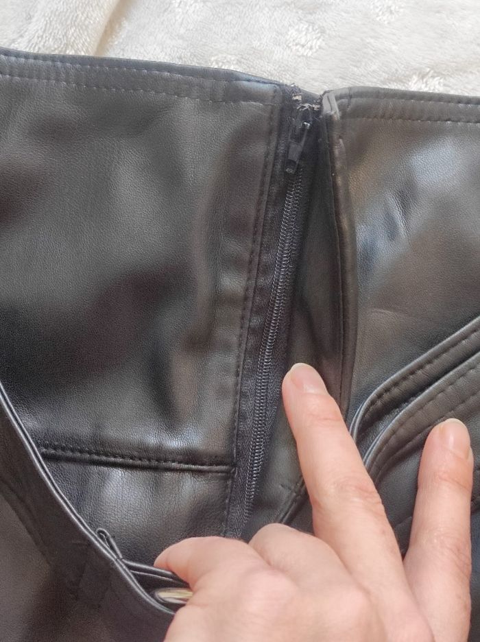 jupe taille haute , grande fermeture éclair et ceinture. Doublé à l'intérieur, extérieur façon type simili cuir. Avec poches sur le côté De la marque bershka en taille L. Aucun défaut, en très bon état.