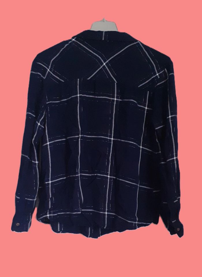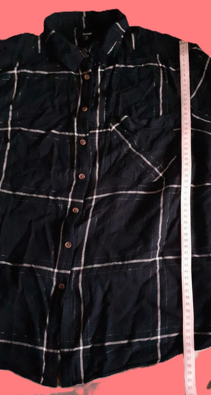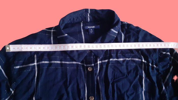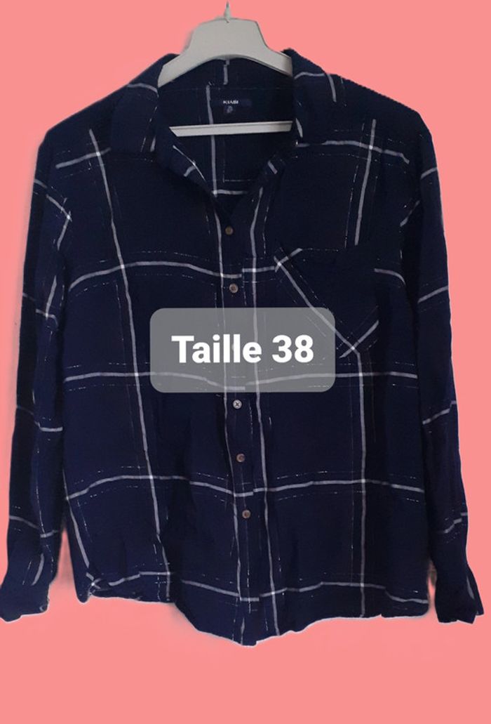 Je vous propose cette belle chemise toute douce, très agréable à porter. *️⃣ Marque : Kiabi. *️⃣ Taille : 38. *️⃣ Couleur : Marine et fines rayures blanches avec fil argent. *️⃣ Motif : Grands carreaux. *️⃣ Manches longues. *️⃣ Fermeture boutons. *️⃣ Une poche sur la poitrine. *️⃣ En excellent état. *️⃣ L'étiquette à été coupée. Je n'en connais donc pas la composition. Ce pourrait être un mélange de viscose et coton... 📏 Dimensions :       - Longueur totale : ± 56 cm sur le côté le plus court.       - Aisselle à aisselle : ± 49 cm.       - Épaule à épaule : ± 39 cm. ★☆**☆**☆**☆**☆**☆**☆**☆**☆**☆★ #haut_martine66500 #38_martine66500 #tailleM_martine66500 #chemisierfemme #chemisefemme #chemisecarreaux #chemisiercarreaux ★☆**☆**☆**☆**☆**☆**☆**☆**☆**☆★ 🛍🛍 Les réductions sur les lots sont activées. N'hésitez donc pas à faire une petite visite dans mon dressing. Et, si vous avez besoin de plus d'informations, vous pouvez me contacter. Je réponds en général rapidement !!