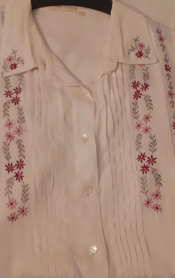 🌺Très joli chemisier brodé à plis plats. Taille 42/44🌺